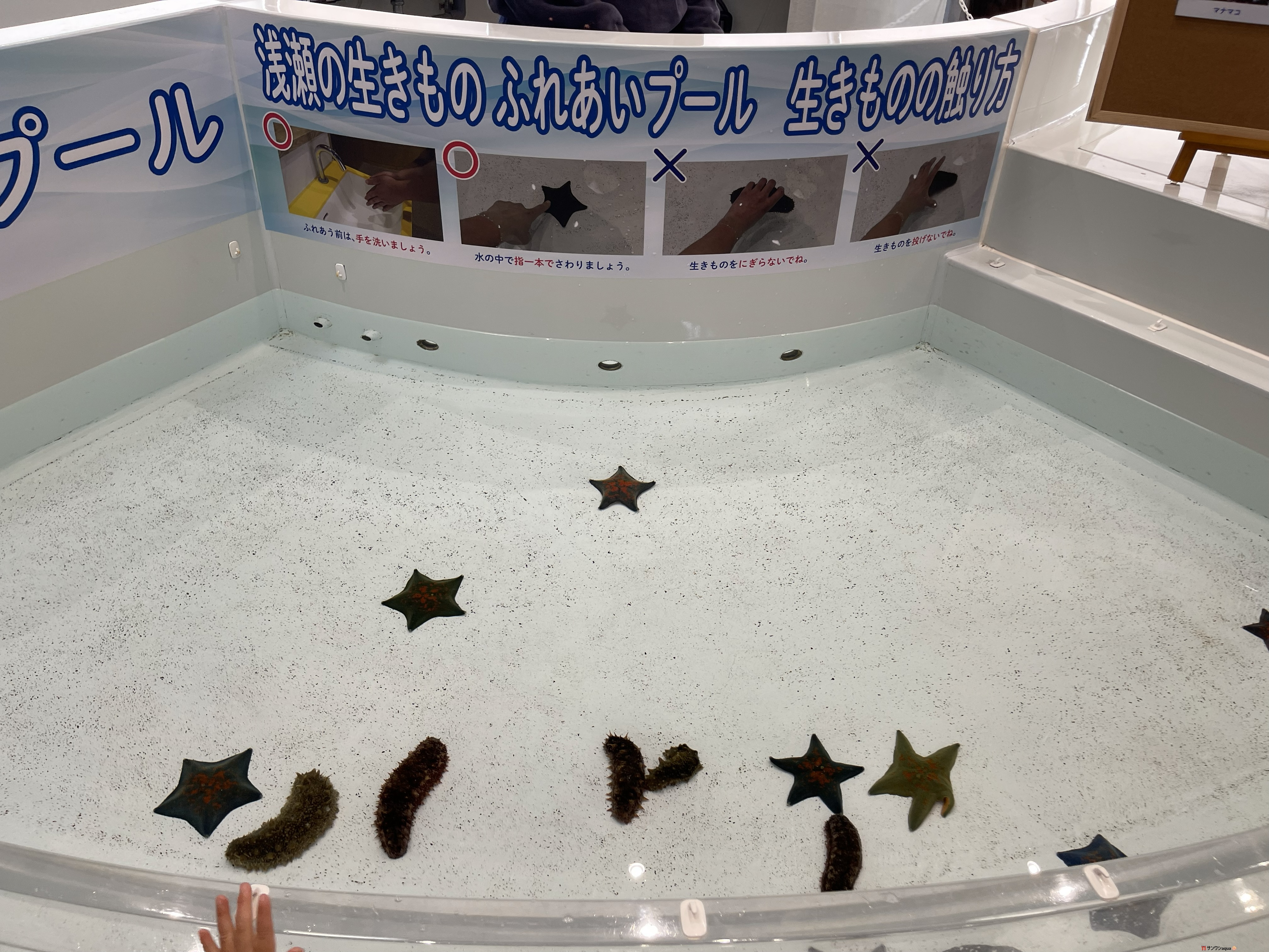 触れ合い :3 タッチプールでヒトデ等に触れられる