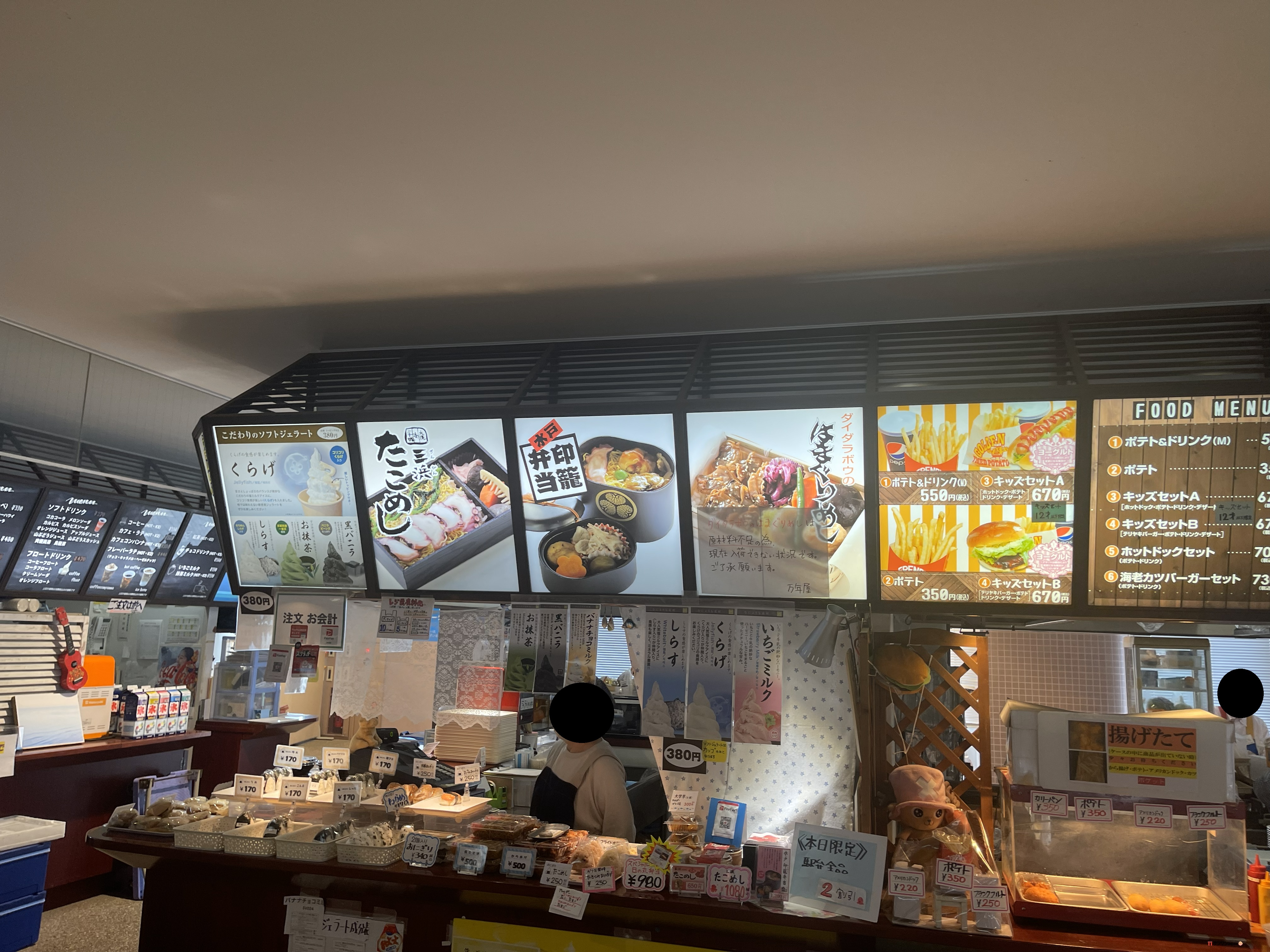 - フードコートでは10店舗以上の多様な飲食が可能。地元魚料理から軽食まで揃い、屋外テラス席で太平洋を眺めながら食事が出来る。