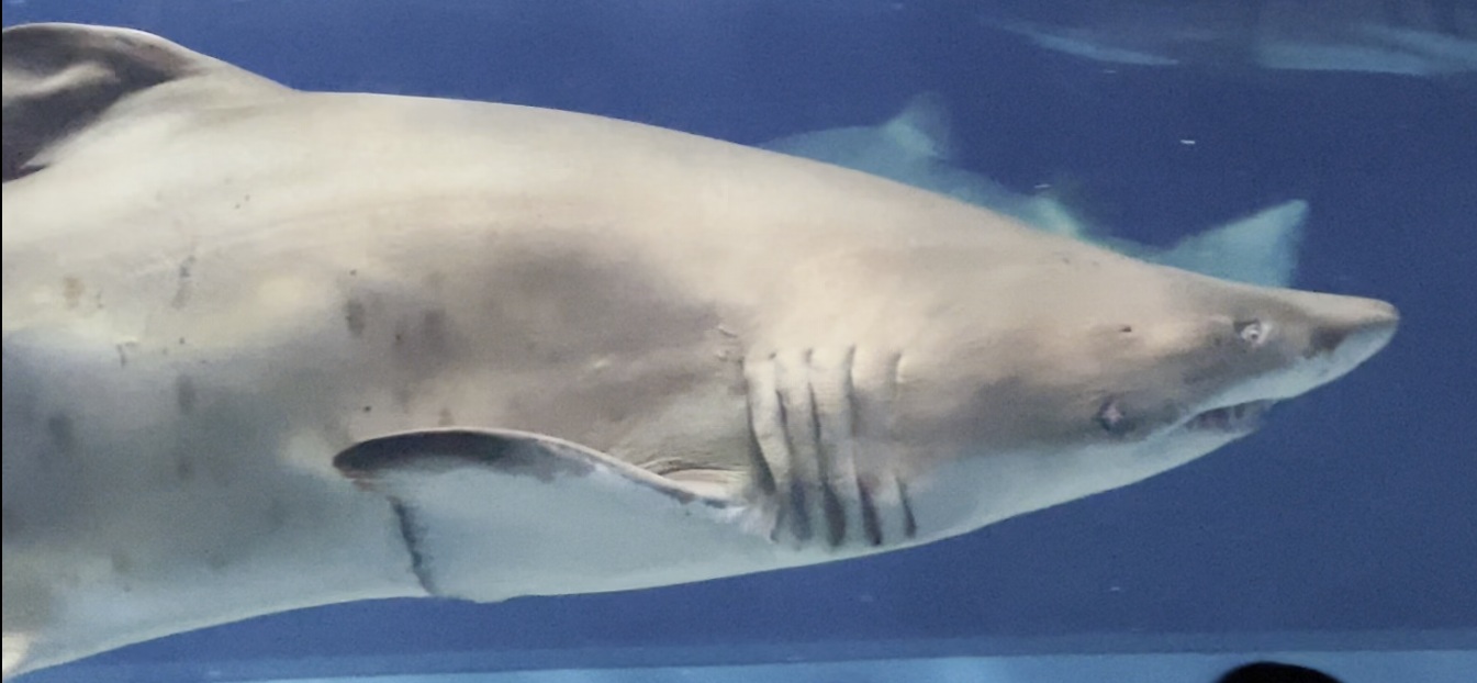 - 国内で唯一繁殖に成功した全長3.5mを超えるシロワニをはじめ、メガマウスなどの希少サメの標本も展示。