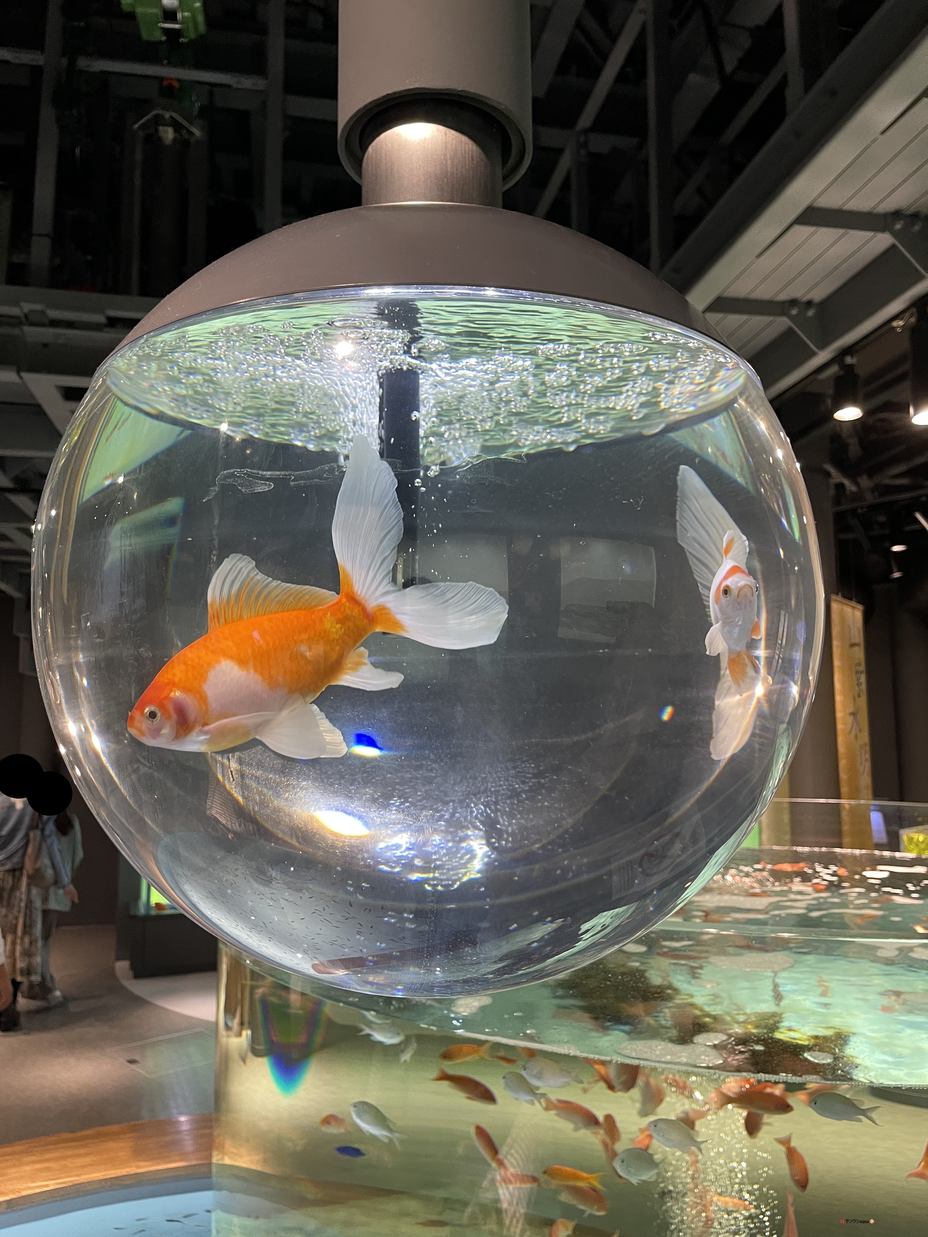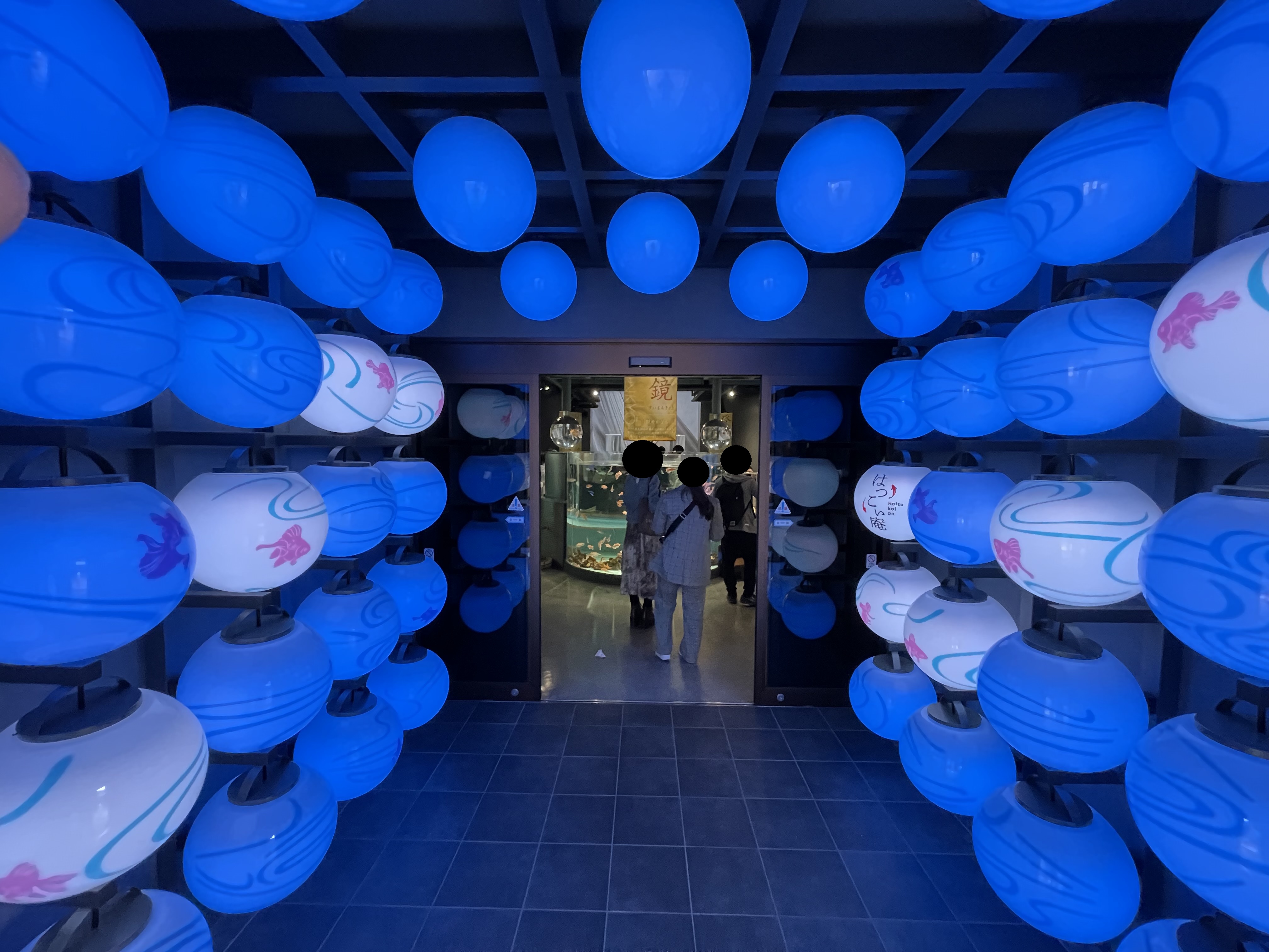 『はつこい庵』エリアは宮島に相応しい、金魚をメインに据えた和風アートアクアリウムとなっている。