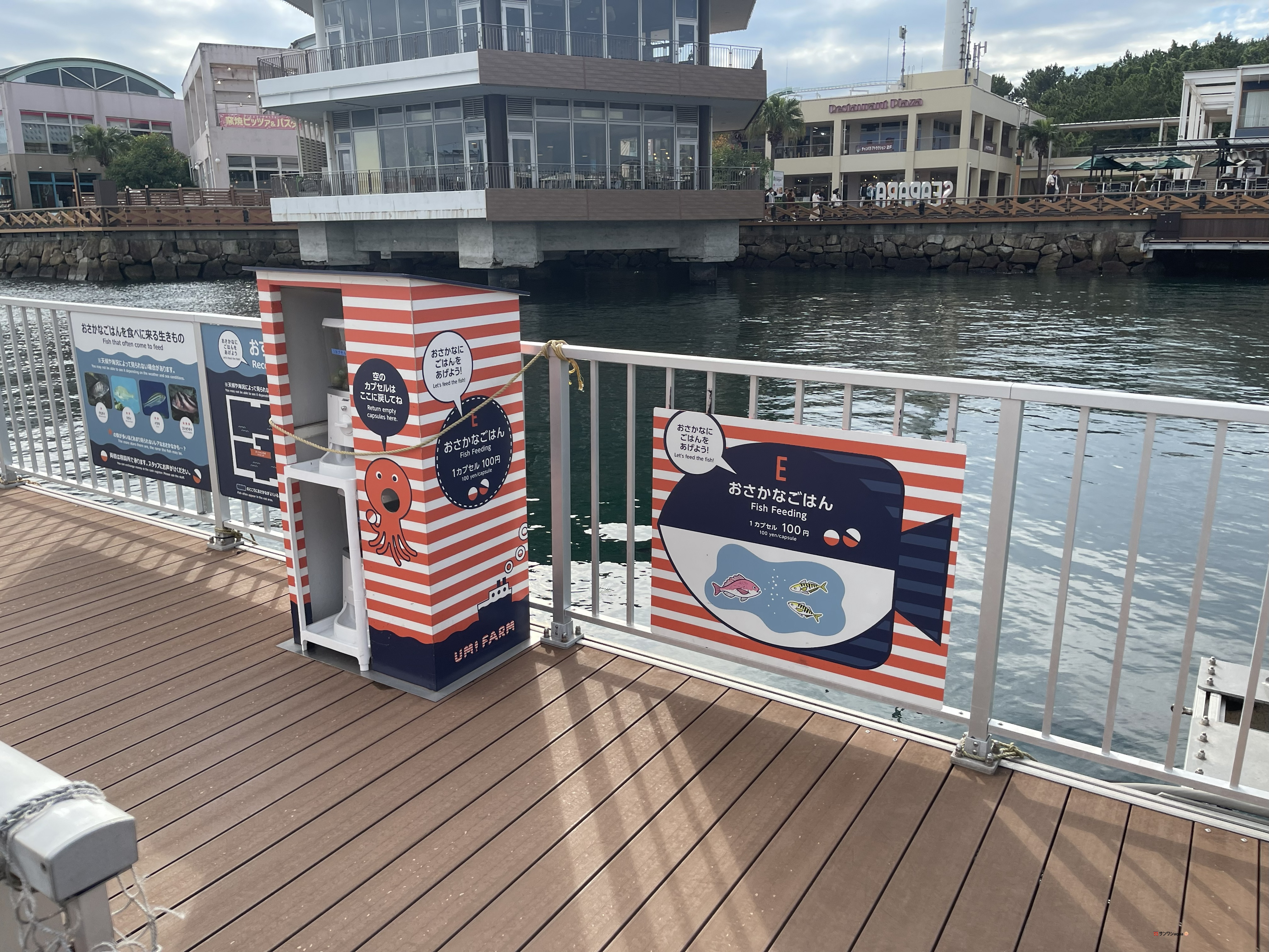 『うみファーム』ではマアジ、マダイなどが釣れる(有料)。更に併設のレストランで調理してもらう事が可能(有料)