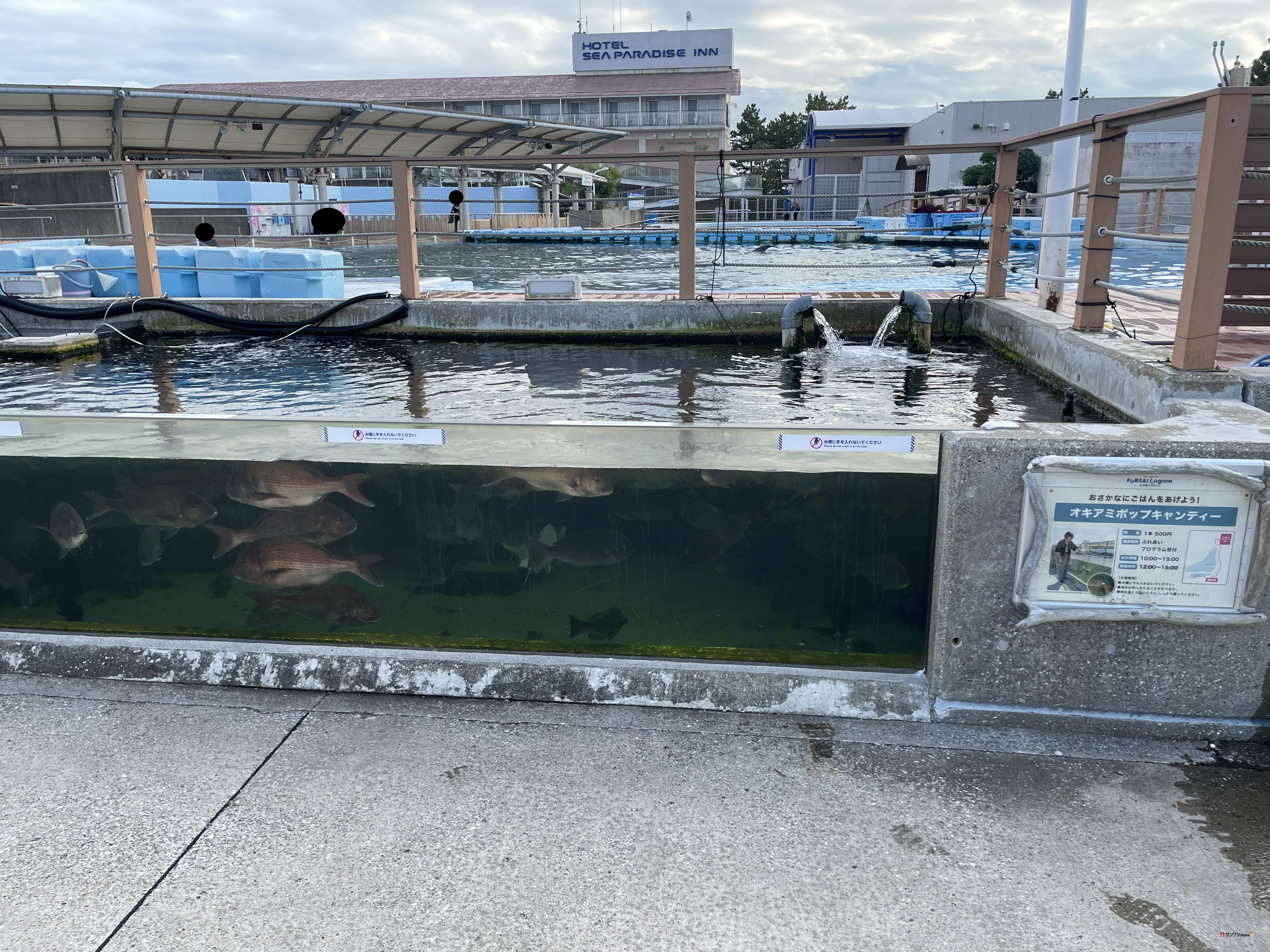 - 宿泊はホテル シーパラダイス インがオススメ。オプションで水族館の開館前見学も有り。島内での夕食時間が短い事には要注意。