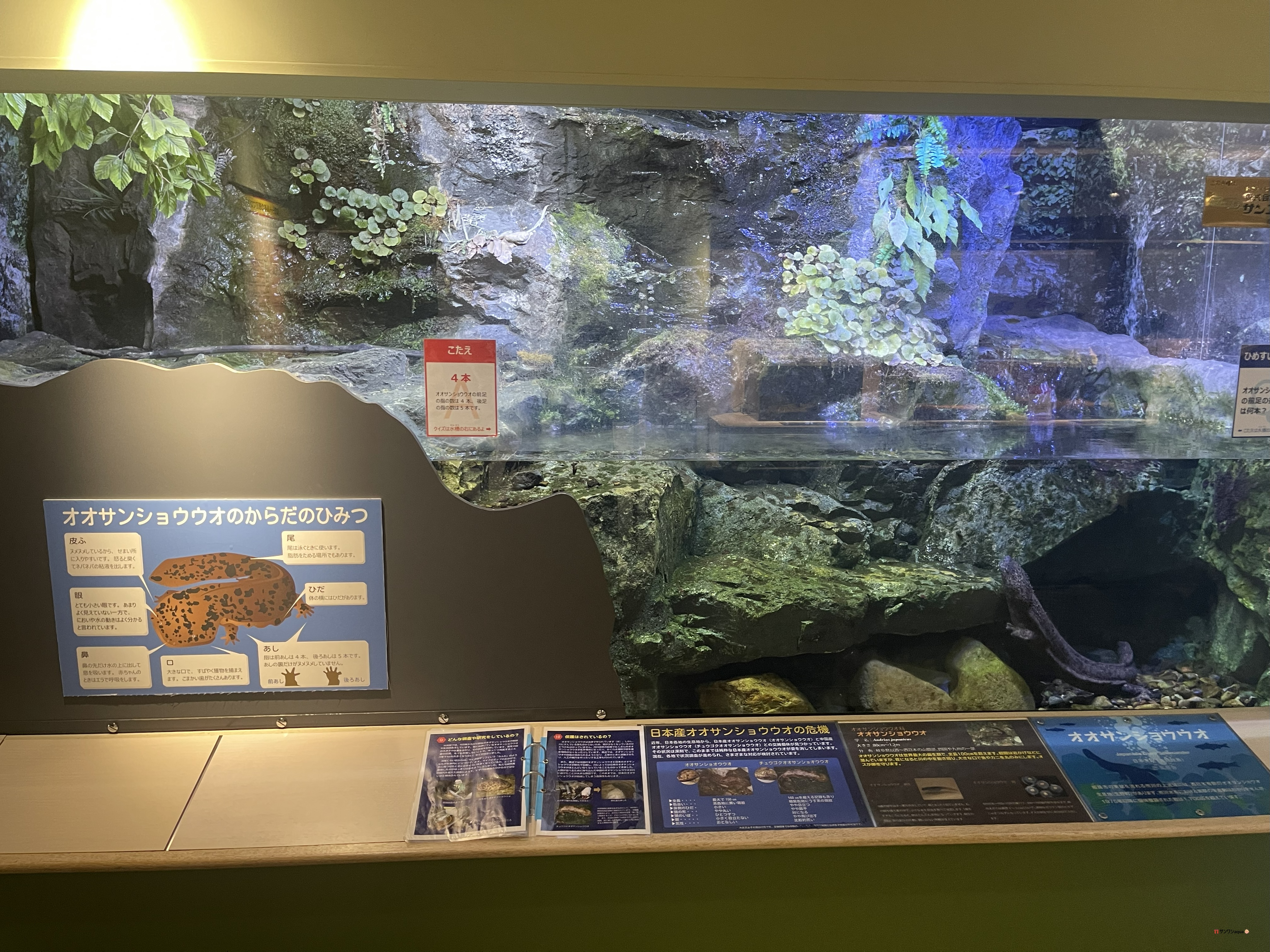 オオサンショウウオやウミガメの研究に取り組んでいて資料展示が豊富。
