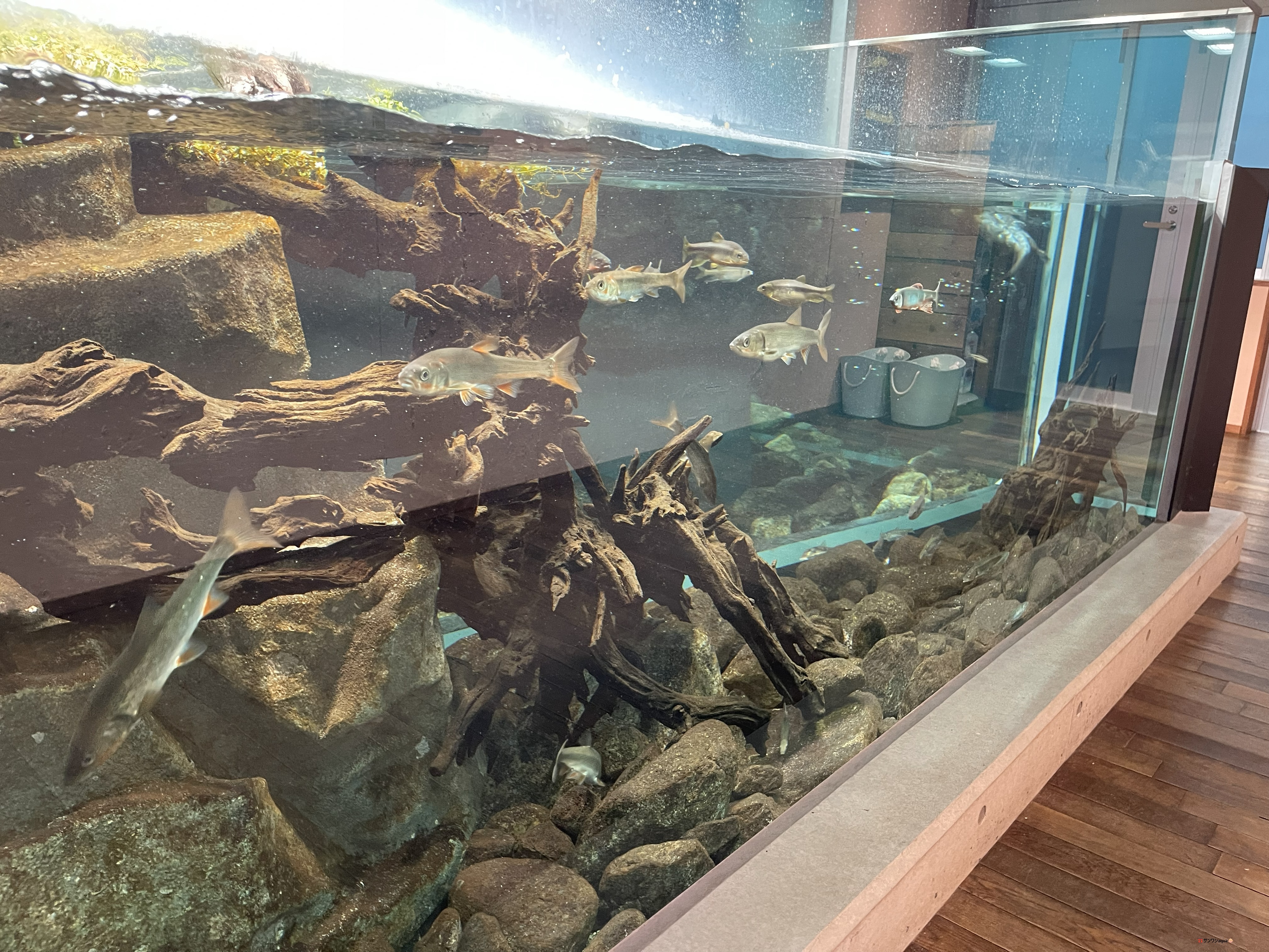 魚だけでなくコツメカワウソやカメ、アヒル、カエルなど多様な生き物を展示している。