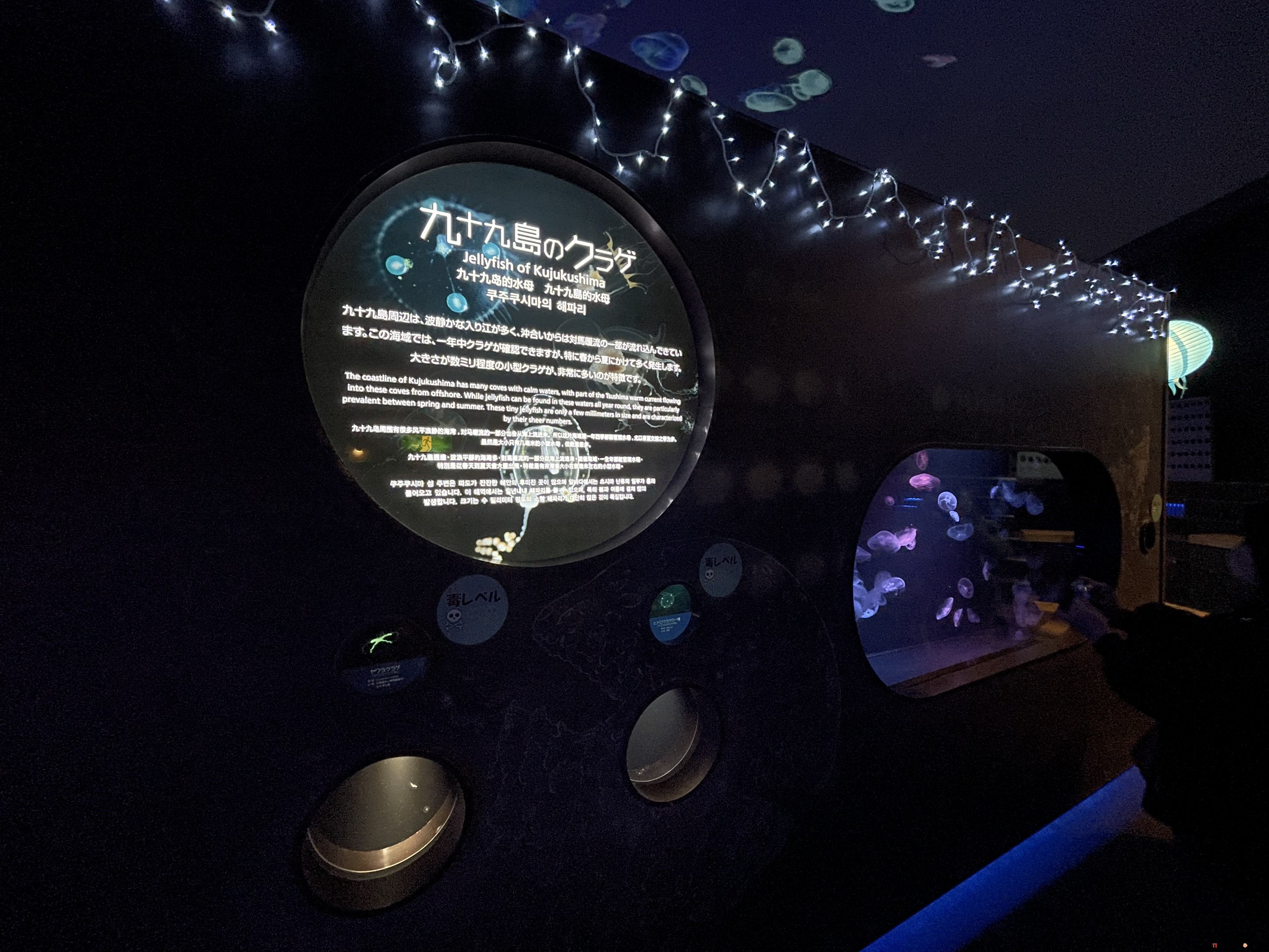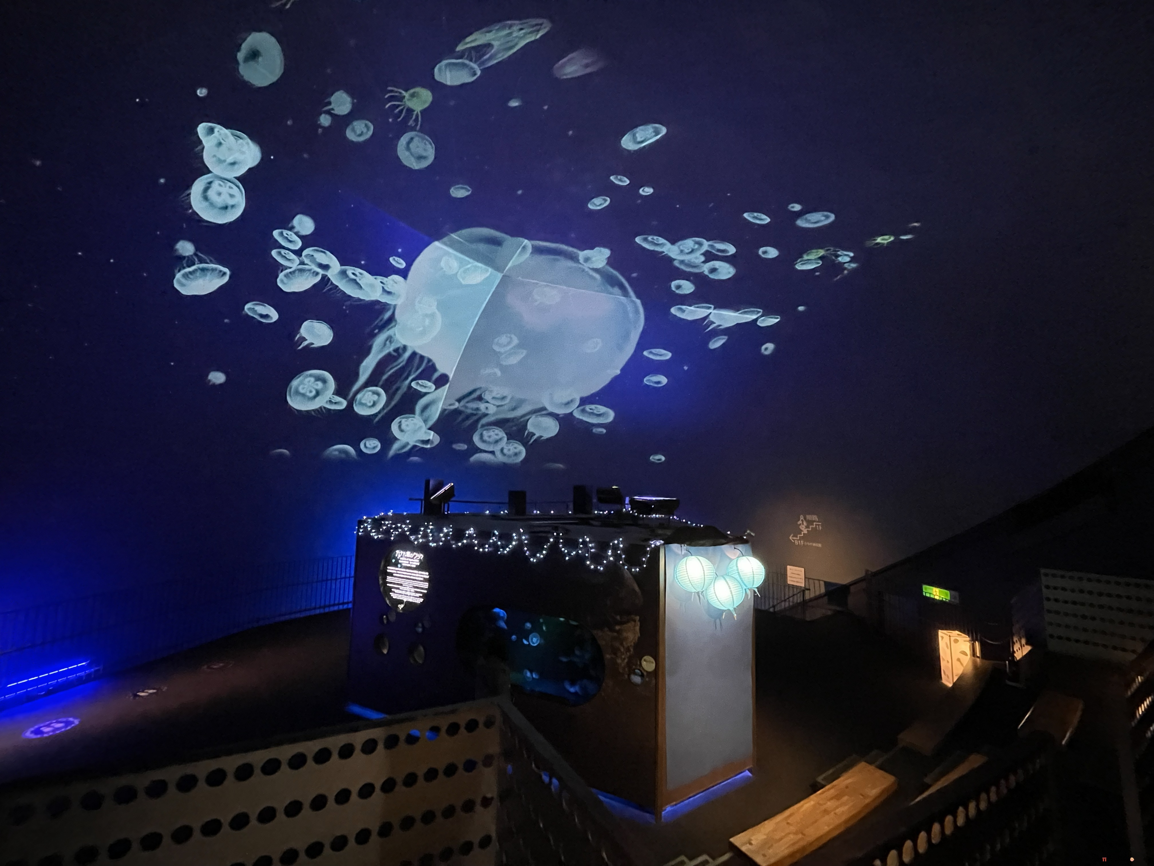 幻想的なクラゲのテーマ展示『クラゲシンフォニードーム』は光・音楽・映像演出を組み合わせた癒し空間。世界的にも希少な種類も展示する。