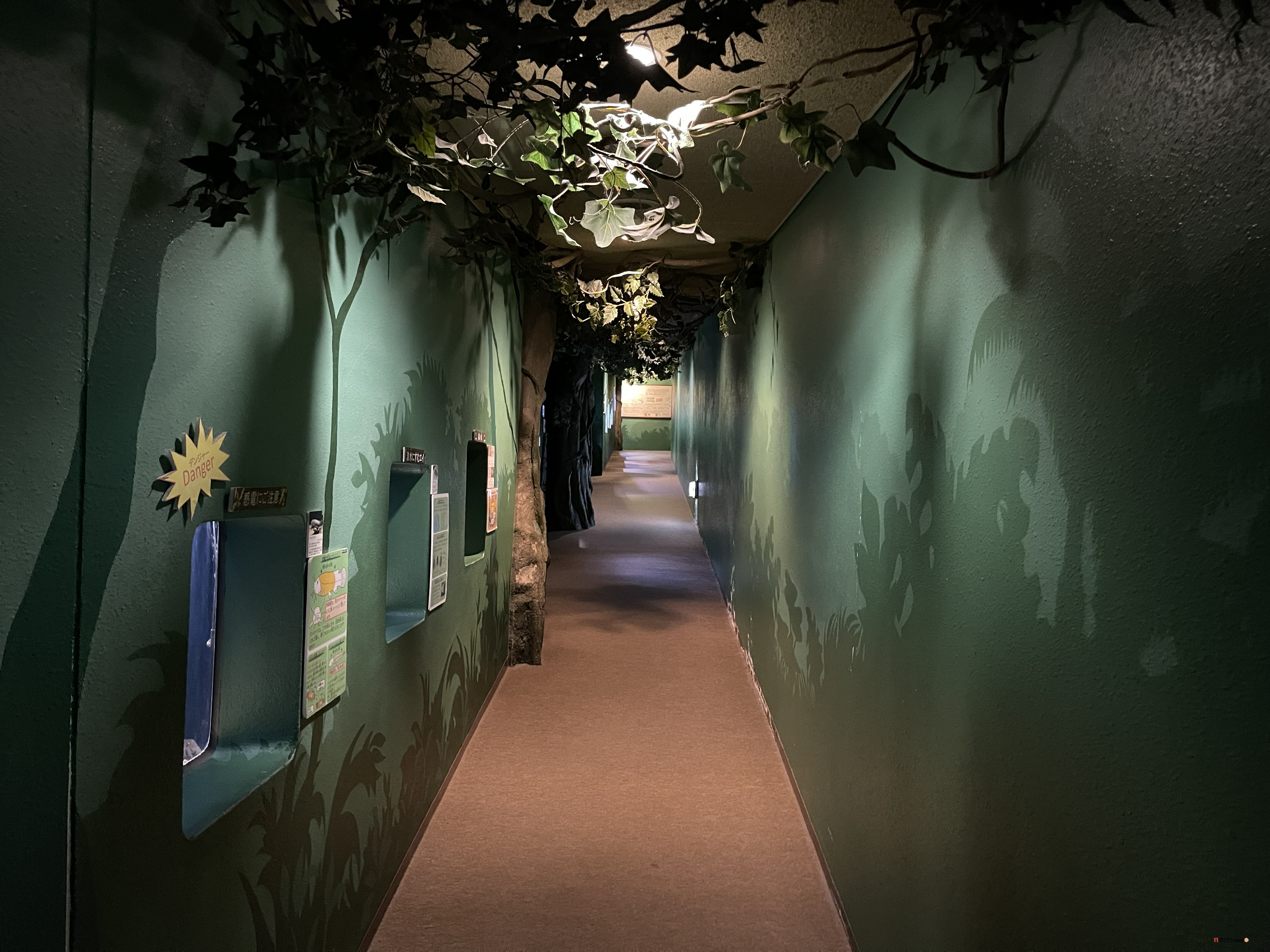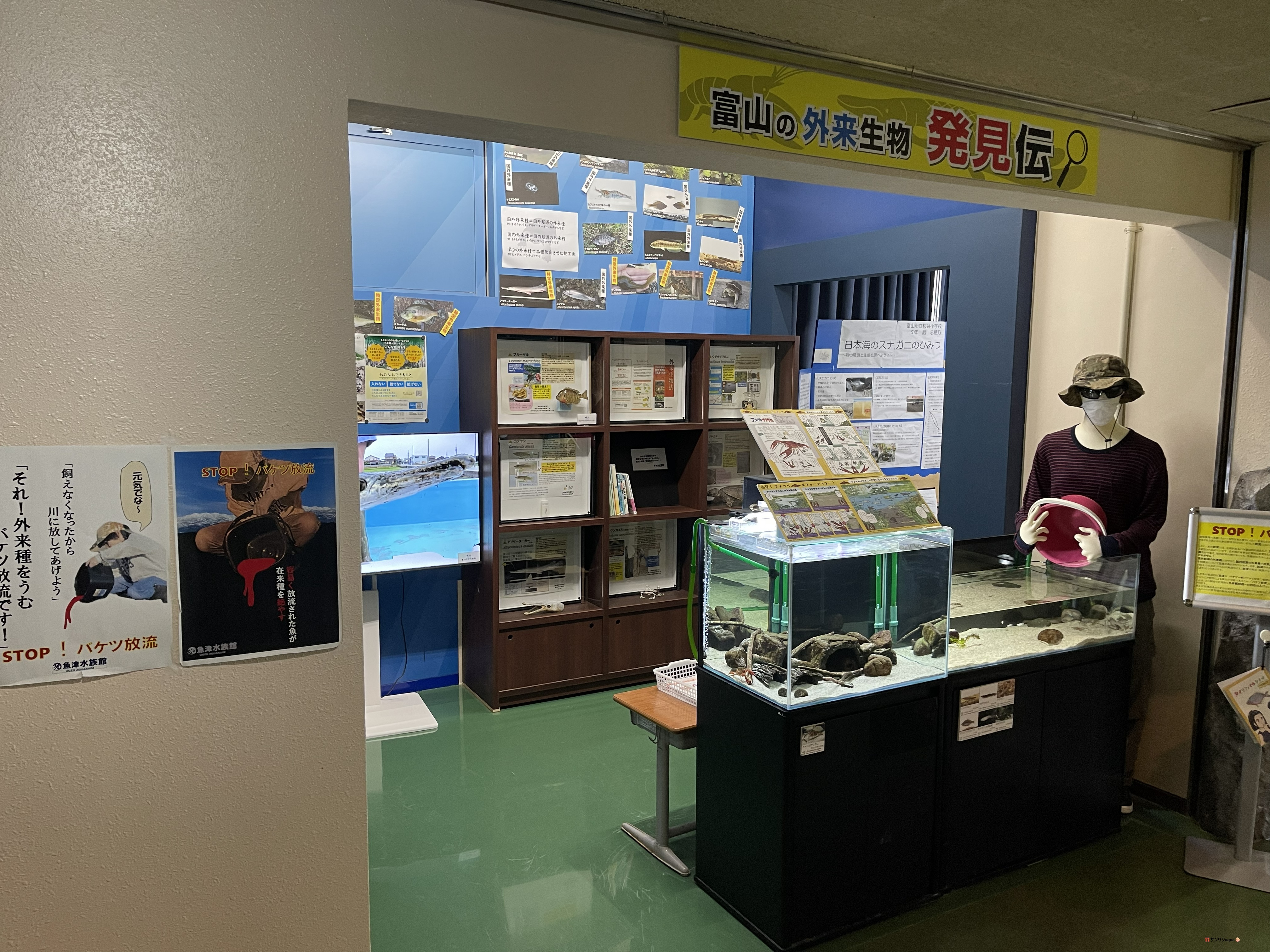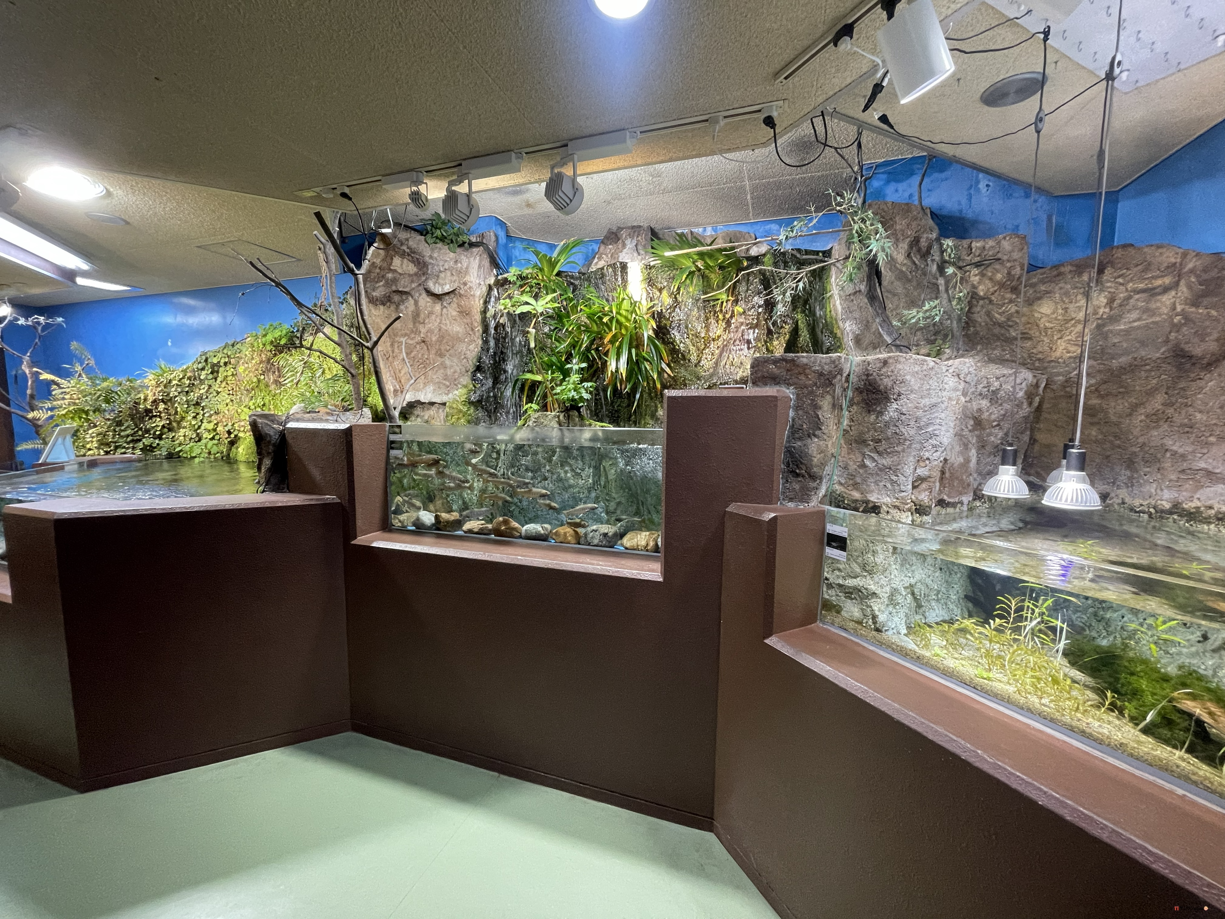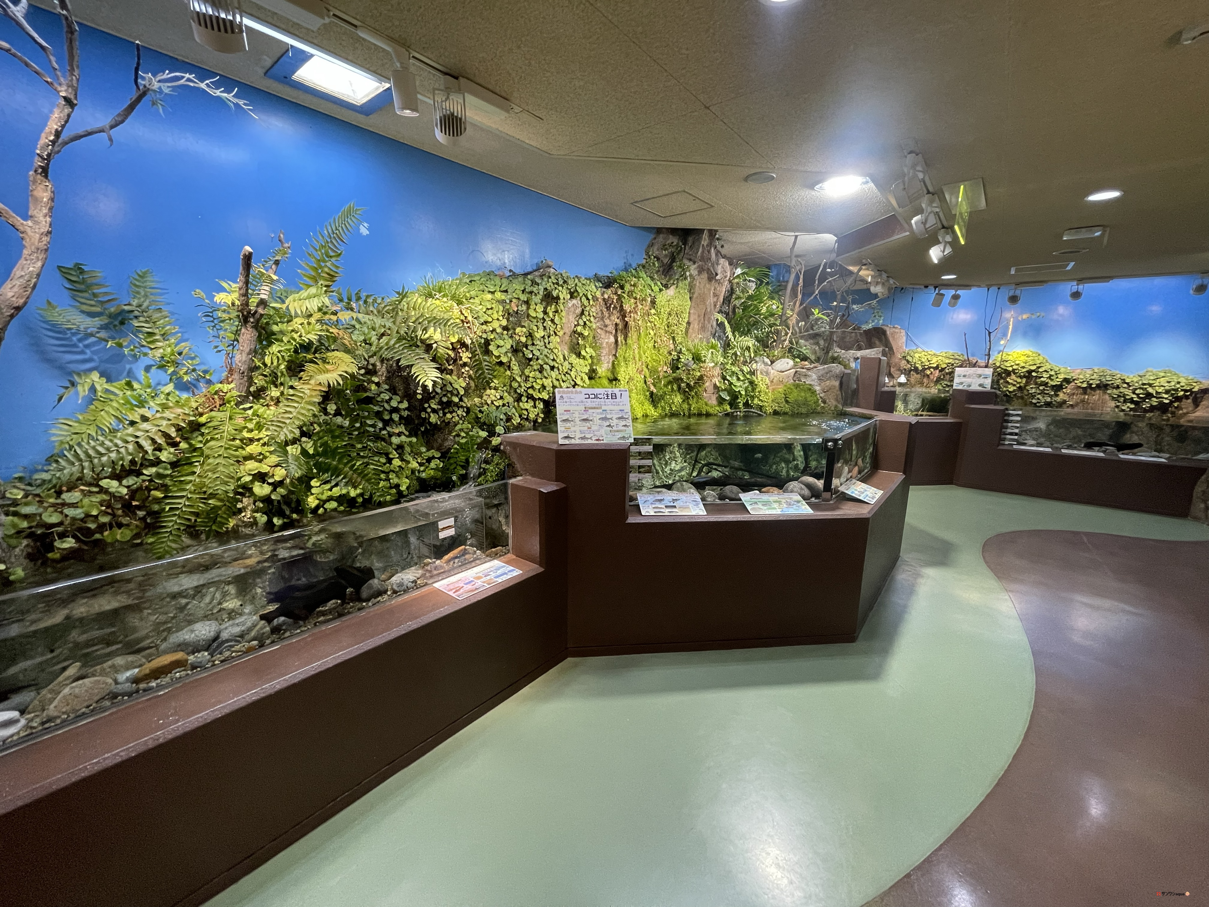 『富山の河川コーナー』・『田んぼの生物多様性コーナー』は山岳地帯〜里山の生態系を明るい雰囲気で再現している。