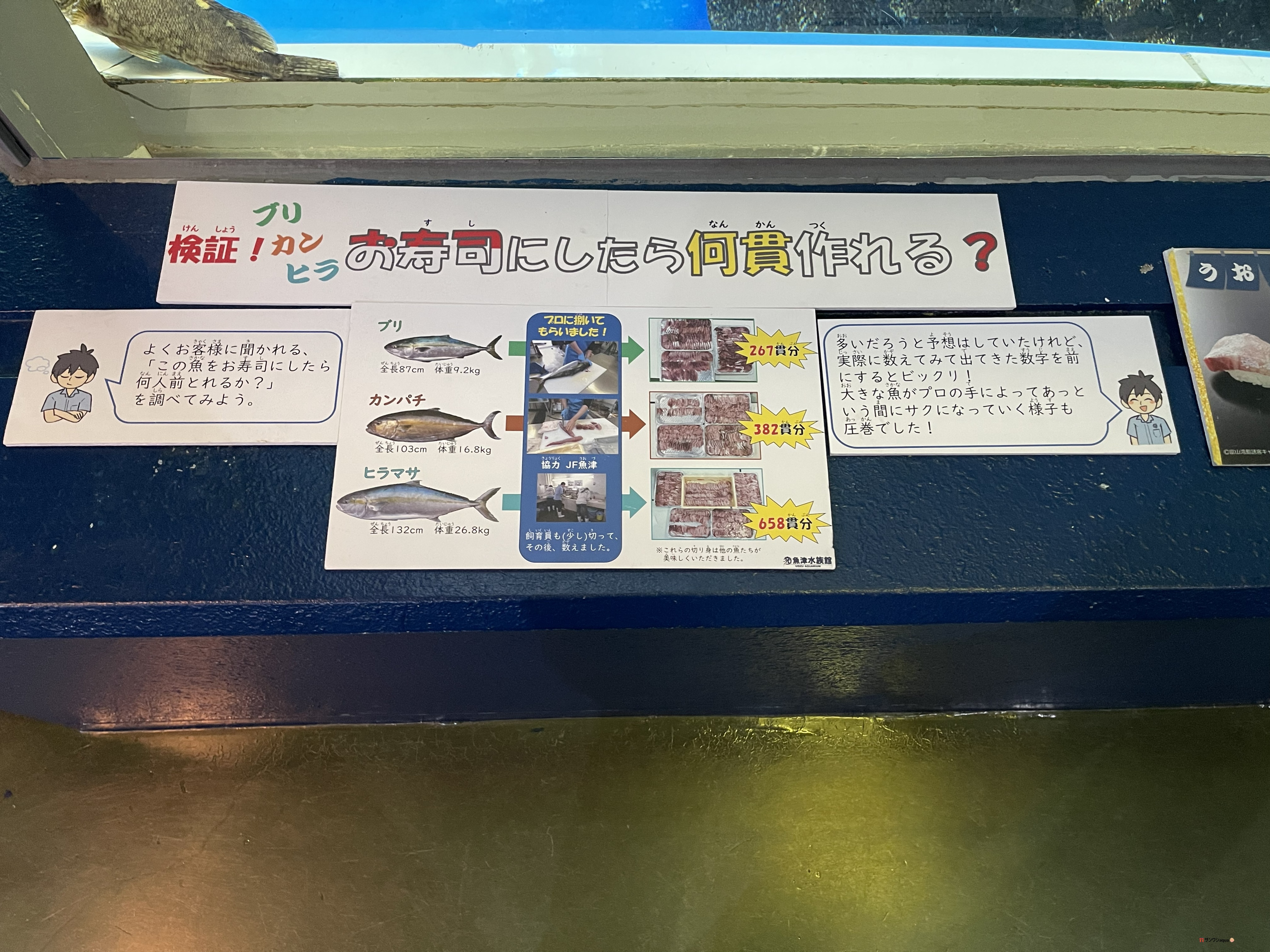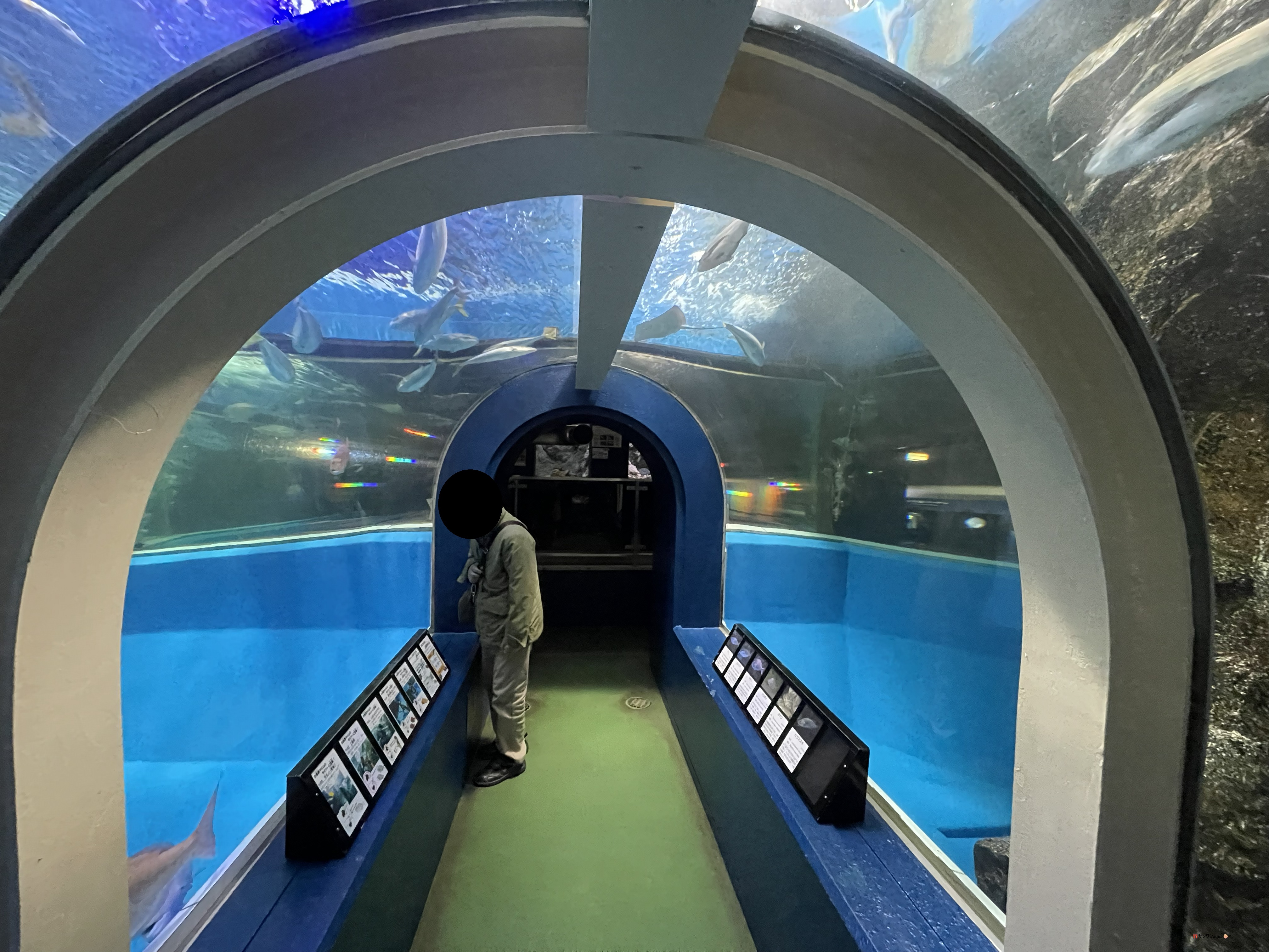 『富山湾大水槽』は日本初となる全面アクリル製トンネルを備えられた大水槽で、ブリやカンパチなどの大型回遊魚が泳ぐ景色を再現している。
