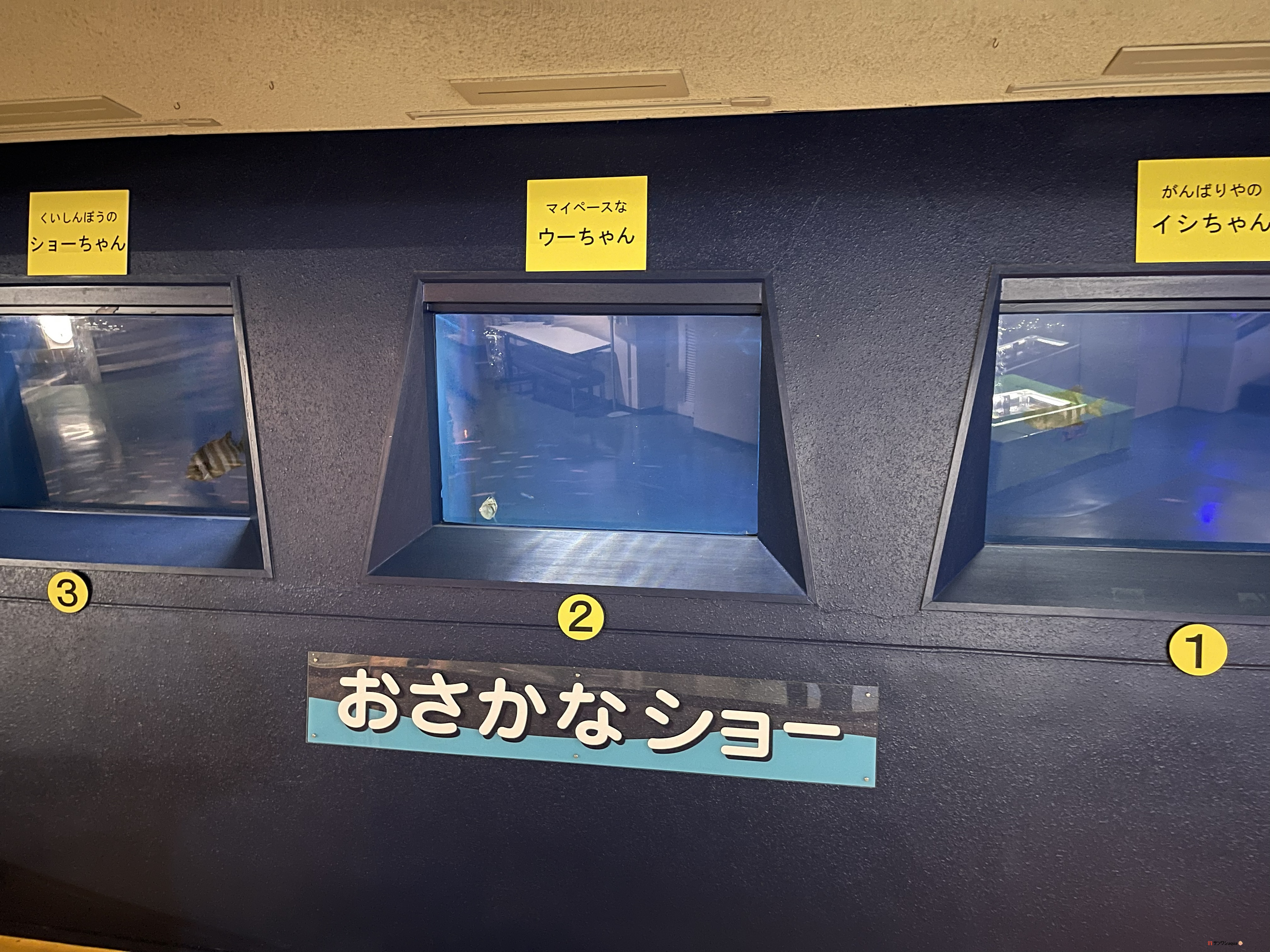 『おさかなショー』ではイシダイの輪くぐり等が楽しめる。中止の場合も有るので要チェック。