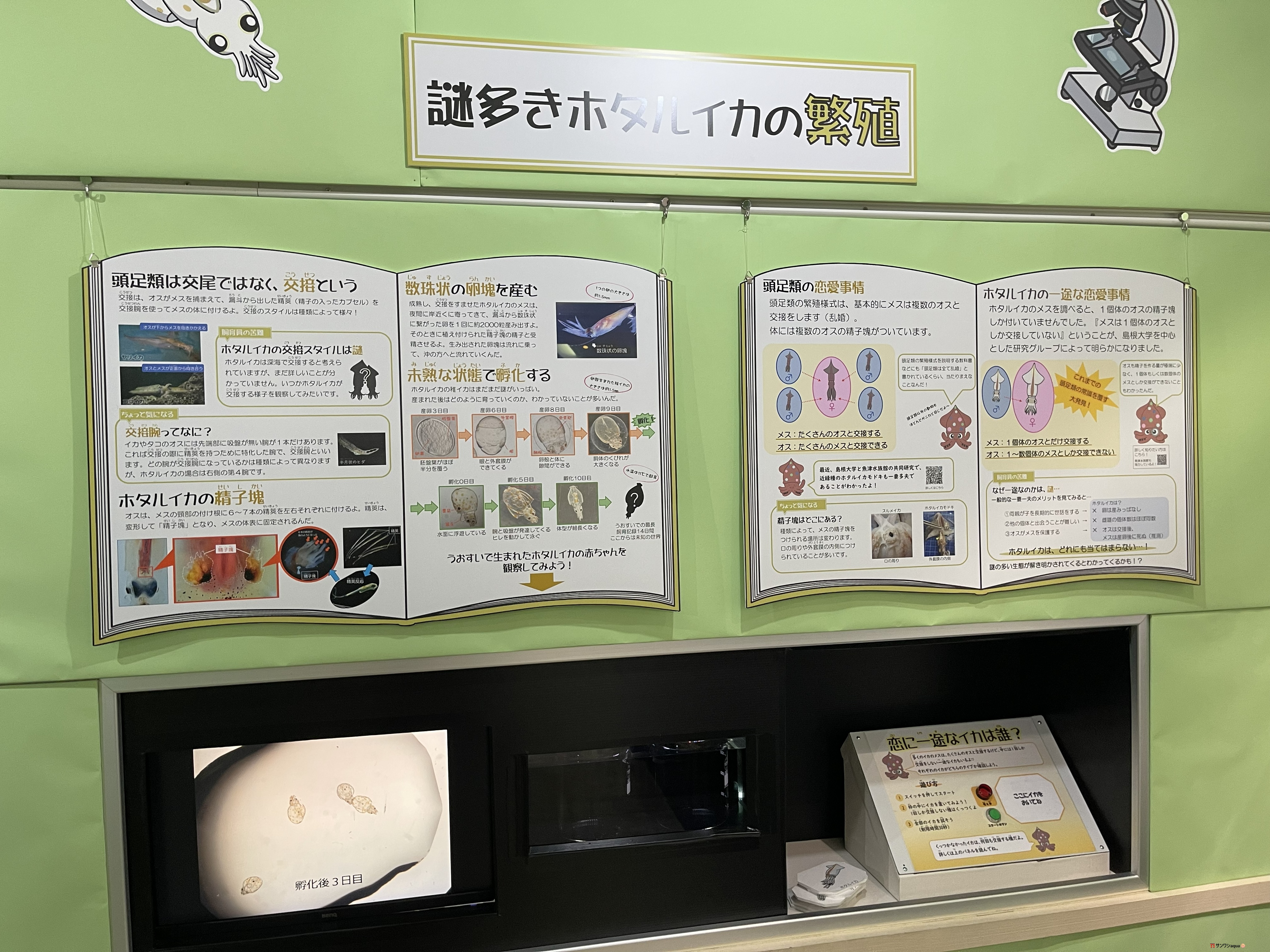 『うおすいファミリウム』では毎年3月下旬〜5月上旬にはホタルイカを展示する。土日祝の発光実験・平日のミニ発光実験を楽しめる。なおホタルイカは当日が不漁だと展示自体がされないので要注意。