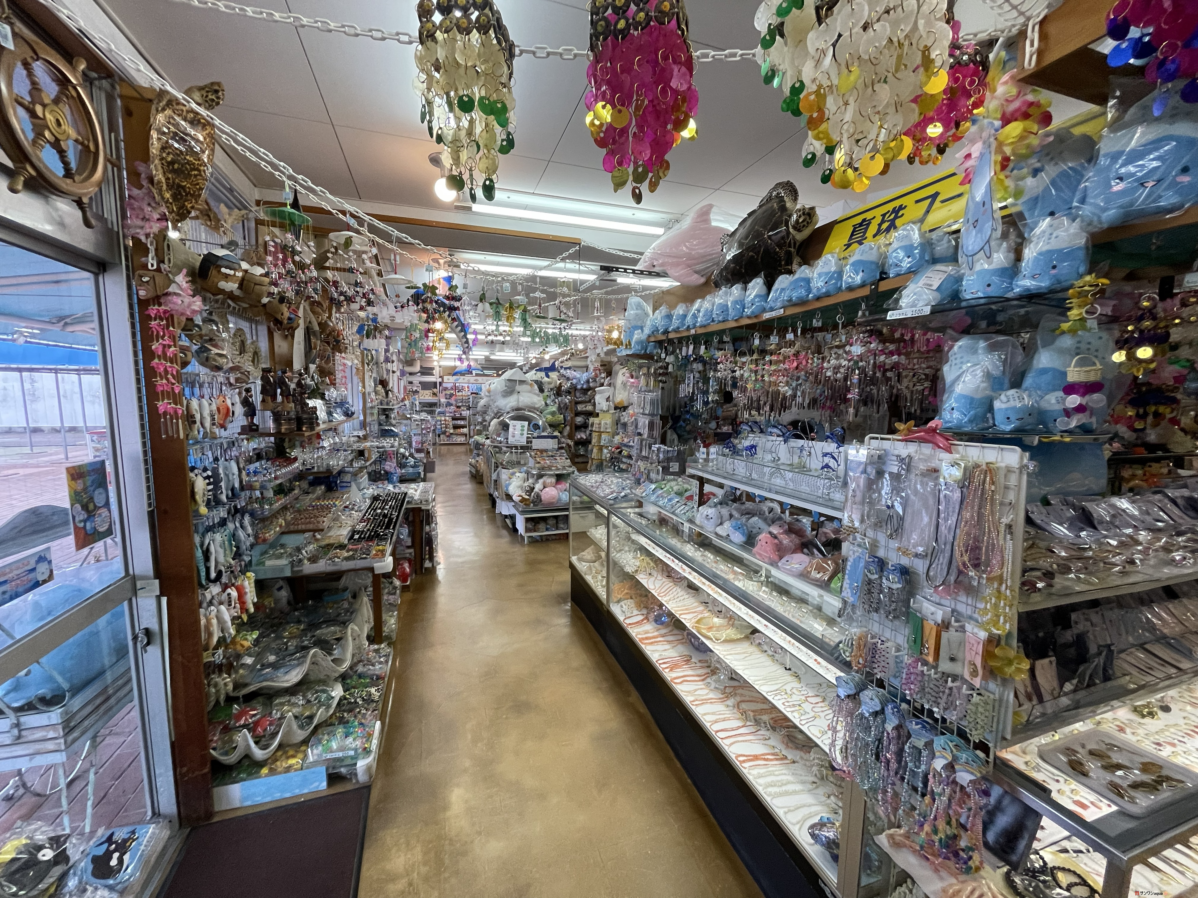 レストハウス1階のお土産コーナーが非常に特徴的。地元で採れる真珠・翡翠や、手作りマスコット・盆栽など全体的に昭和を感じる品揃えとなっている。レトロ玩具や販売終了した装飾品など思わぬ掘り出し物が有るかも。