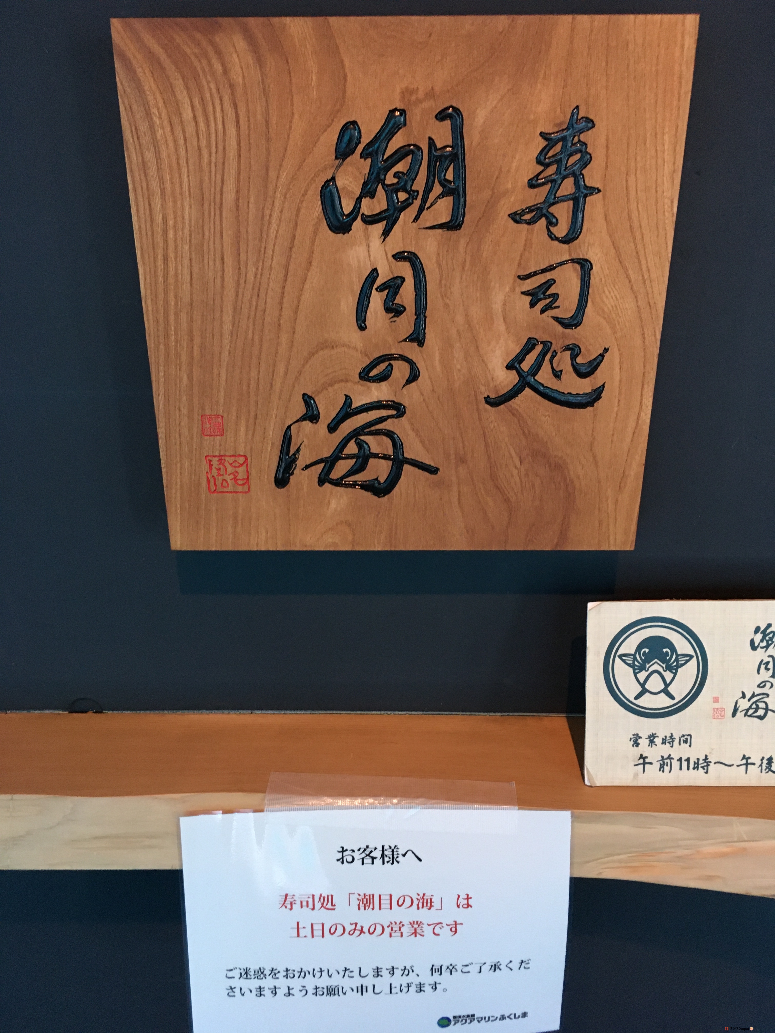 - 館内では海の幸を使ったレストランの他、土日のみ「潮目の海水槽」コーナーで握り寿司が販売されています。