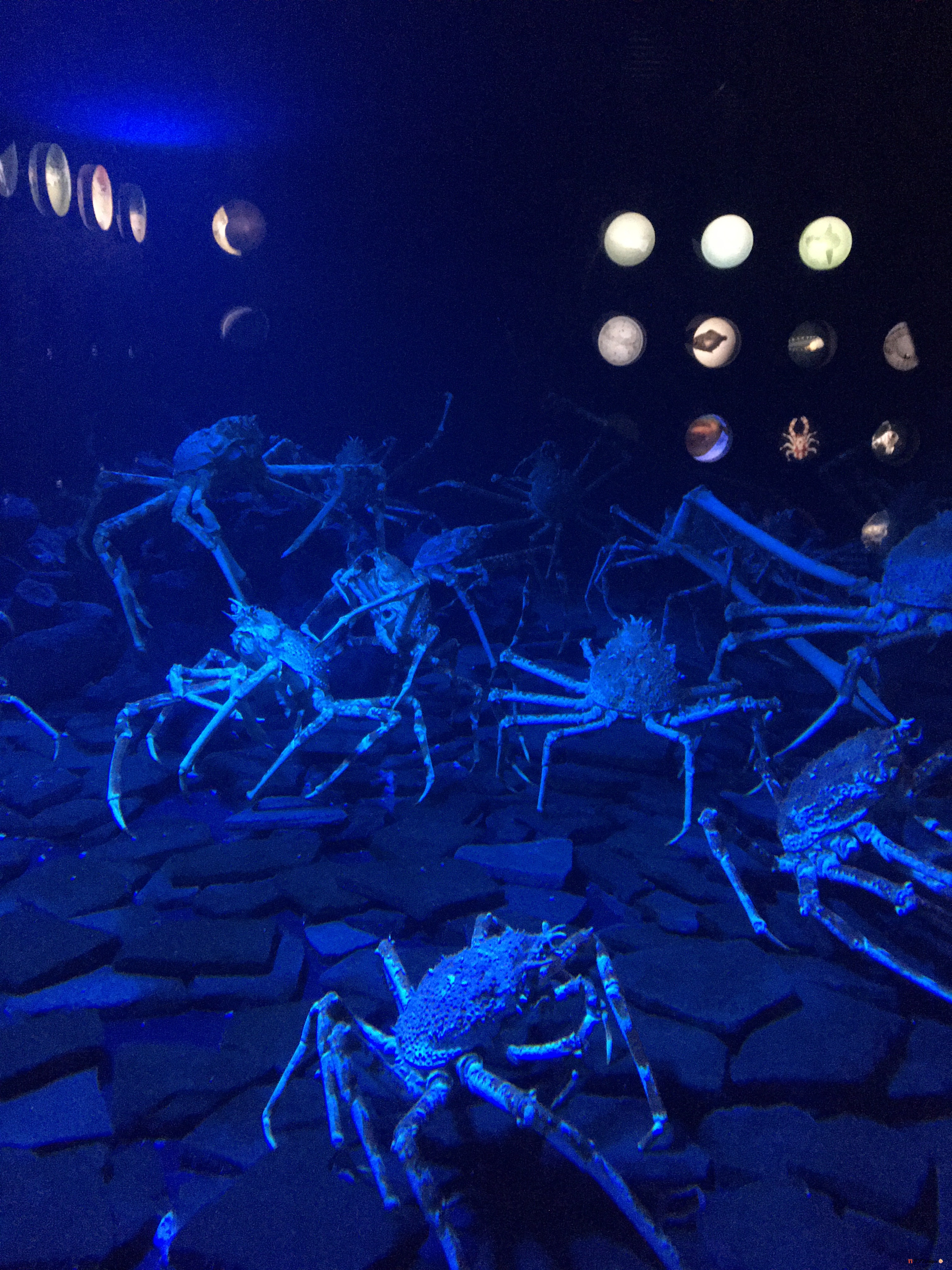 - 目玉となる「潮目の海水槽」は、寒流である親潮と暖流である黒潮の境を再現したトンネル水槽であり、繁殖賞を受賞した大量のイワシや、カジキの様な珍しい魚が展示される事もあります。