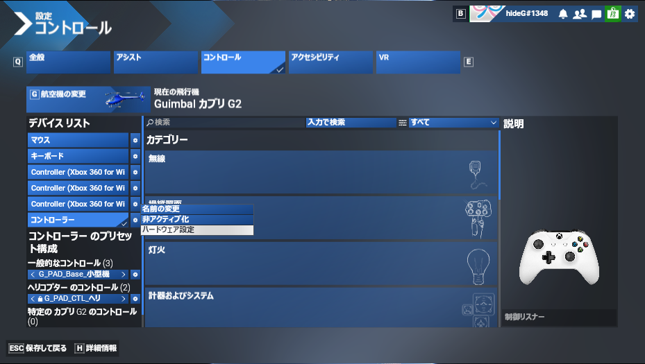 ここではXboxコントローラーとして説明しますが、タランチュラが非常に精度が良いのでお勧めです!