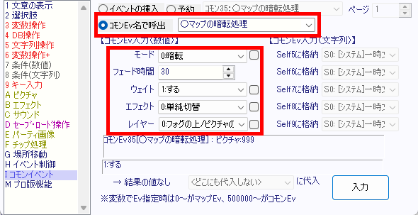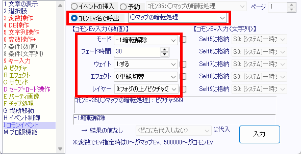 「イベントエディタ」の右側にある「コマンド入力ウィンドウ表示」ボタンを押します。