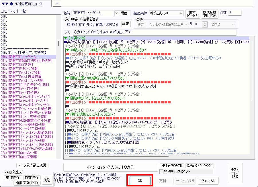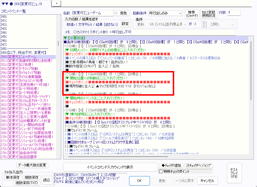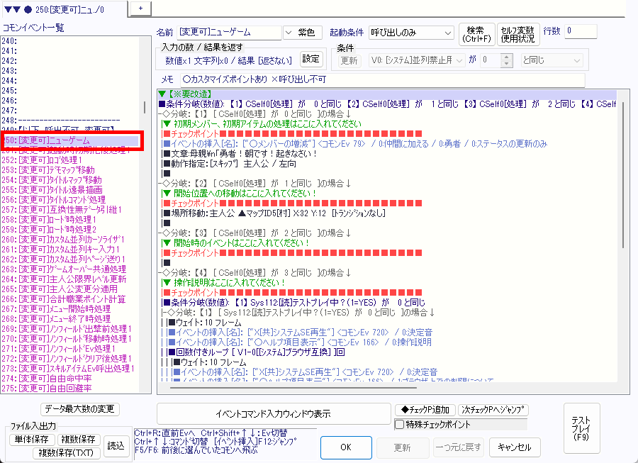 セーブをしていなくとも、マップを切り替えたりしない限りは編集中のイベント内容が消えたりすることはありません。