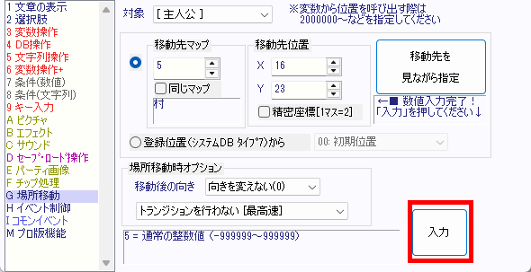 場所移動の移動先をフィールドのダンジョンの南に修正します。