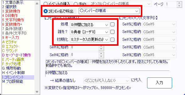 次にコモンイベントで、「○アイテムの増減」で以下を挿入します。