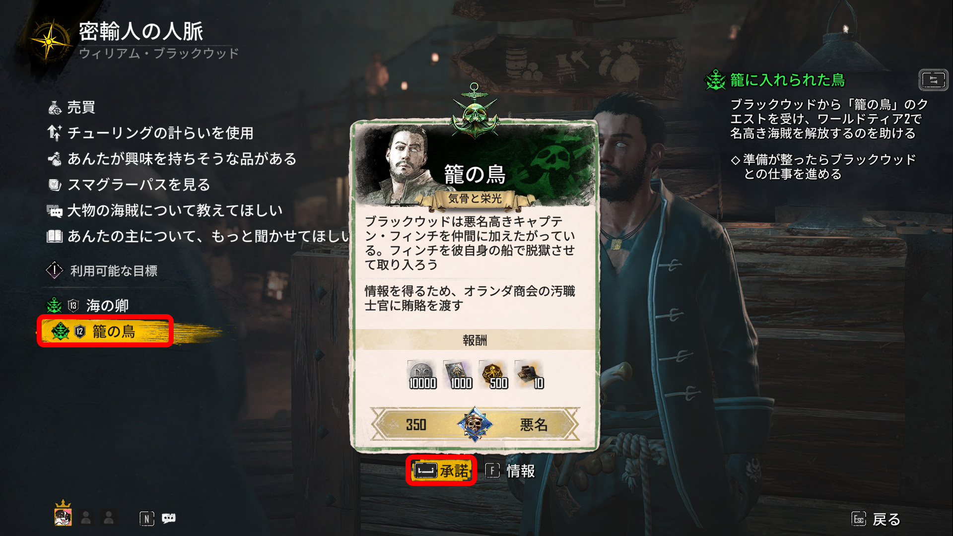 - ブラックウッドに話しかけ、該当するクエストを「承諾」する。