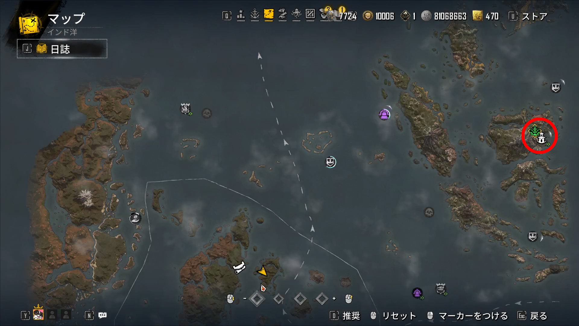 - [⌨:Mキー / 🎮:タッチパッド]でマップを開き、クエストマーク