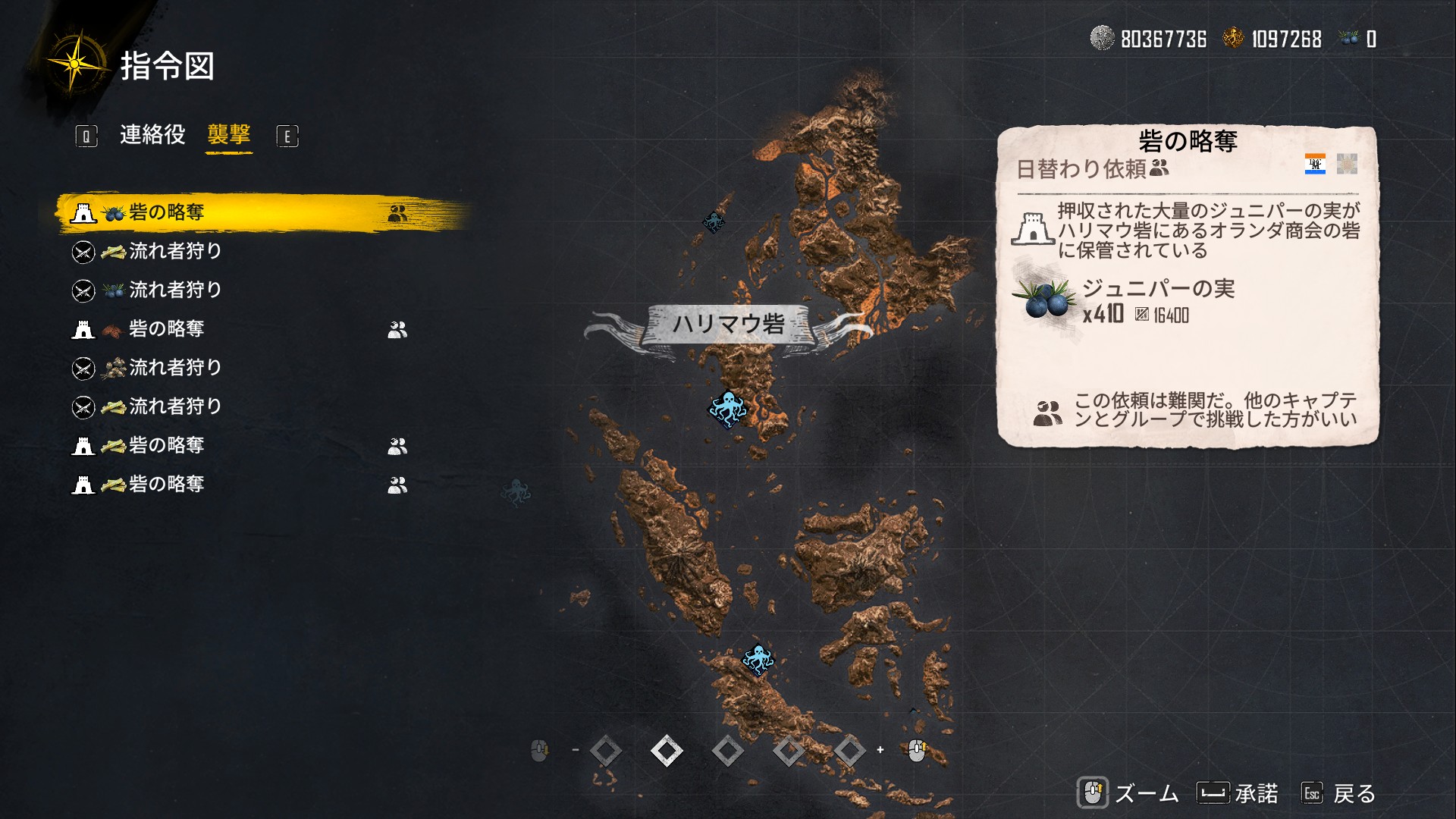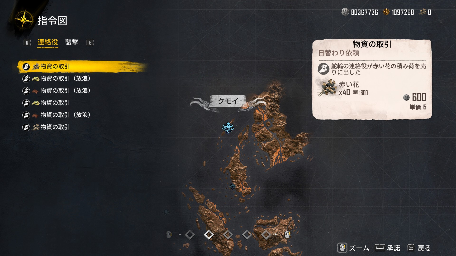 - 指令図・・・舵輪の品(禁制品)の材料を得られる依頼を受けることができる。