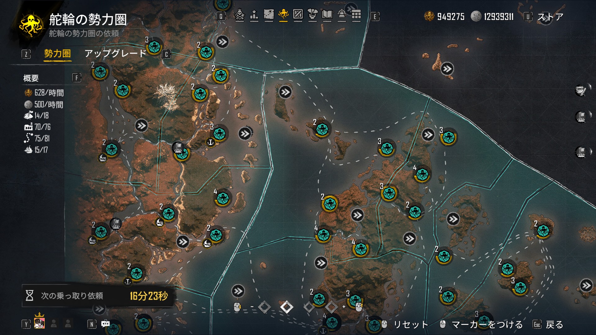 - 舵輪の交易網概要・・・「舵輪の勢力図」にアクセスできる。
