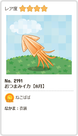 おつまみイカ【8月】 | ねこばば | 衣装 | ☆4 | 56 | 425 | 167 | 1267 | 11 |