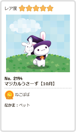 マジカルうさーず【10月】 | ねこばば | ペット | ☆5 | 70 | 532 | 176 | 1336 | 13 |