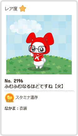 ふむふむなるほどですね【火】 | スタミナ | 衣装 | ☆1 | 43 | 327 | 154 | 1169 | 8 |