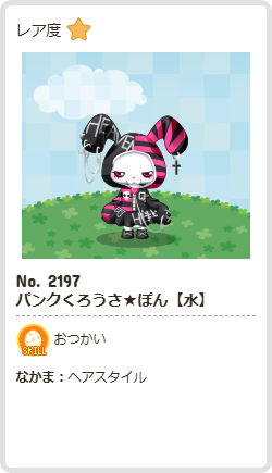 パンクくろうさ★ぽん【水】 | おつかい | ヘア | ☆1 | 45 | 342 | 153 | 1161 | 8 |