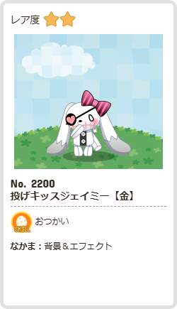 投げキッスジェイミー【金】 | おつかい | 背景 | ☆2 | 48 | 365 | 157 | 1192 | 9 |