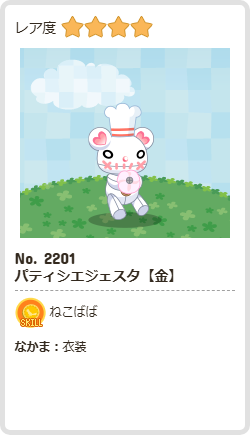 パティシエジェスタ【金】 | ねこばば | 衣装 | ☆4 | 56 | 425 | 170 | 1290 | 11 |