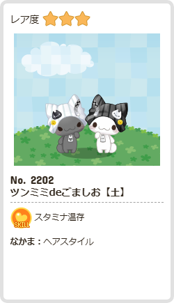 ツンミミdeごましお【土】 | スタミナ | ヘア | ☆3 | 51 | 387 | 165 | 1252 | 10 |