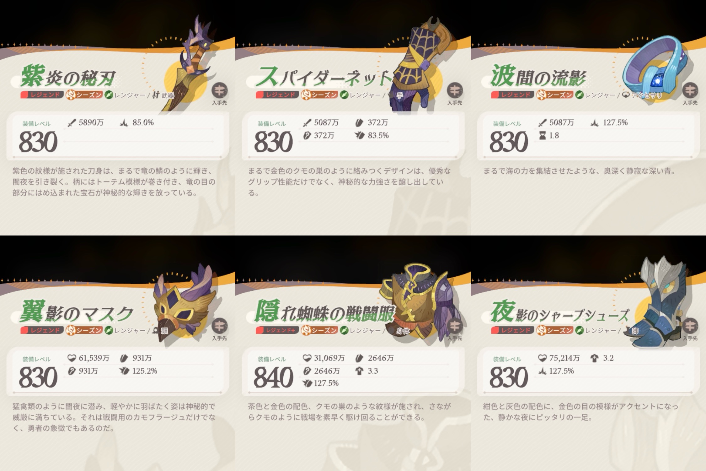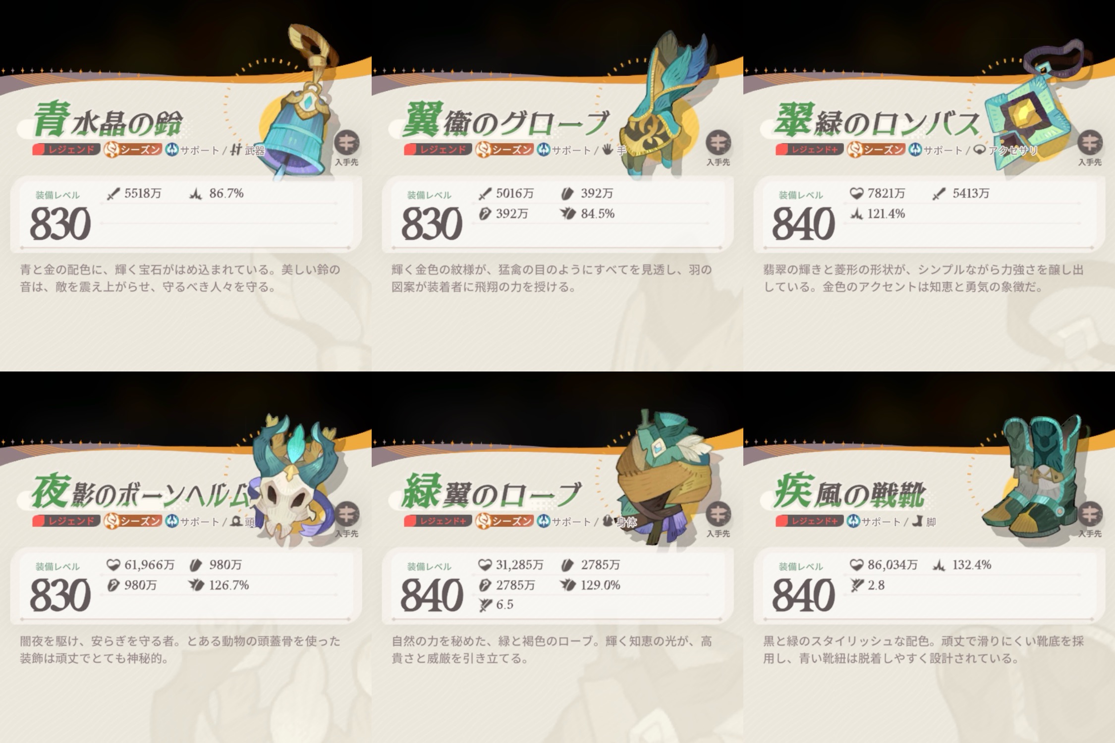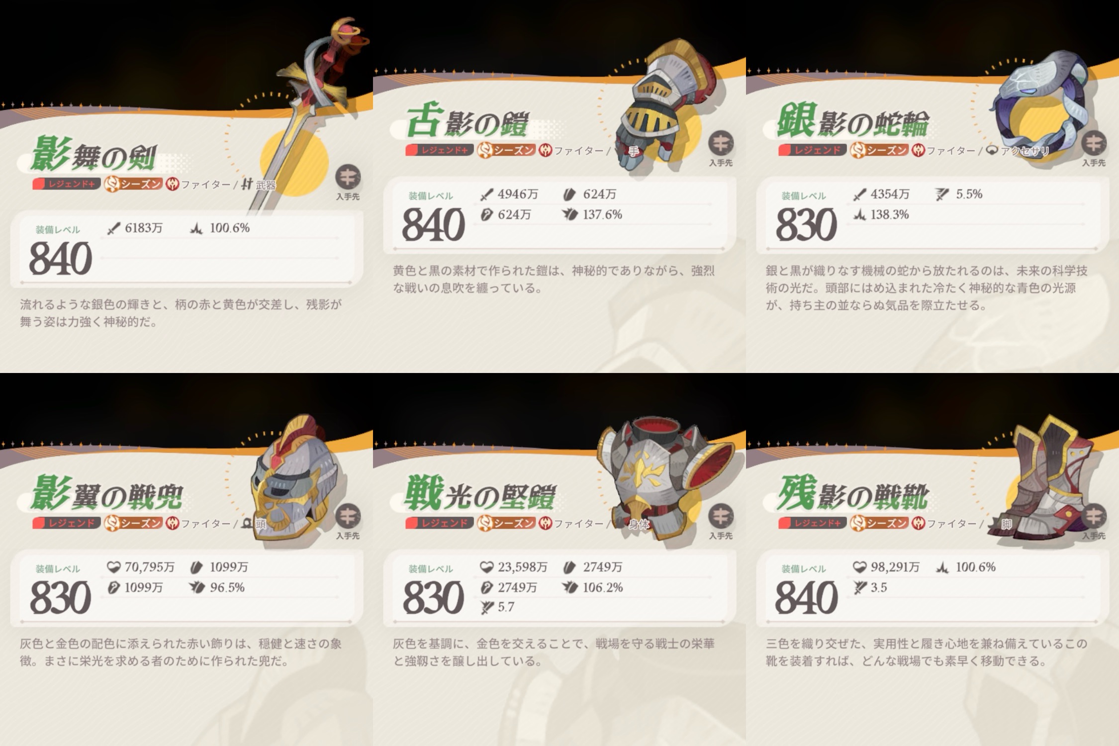 シーズン、レア度によって職業装備違うの知ってました?今回はその装備をまとめてみました。やる気がある限り随時更新。【急募】旅立ちの章の装備(レア〜レジェンド)、シーズン黄昏の戦歌/荒海に咲く...