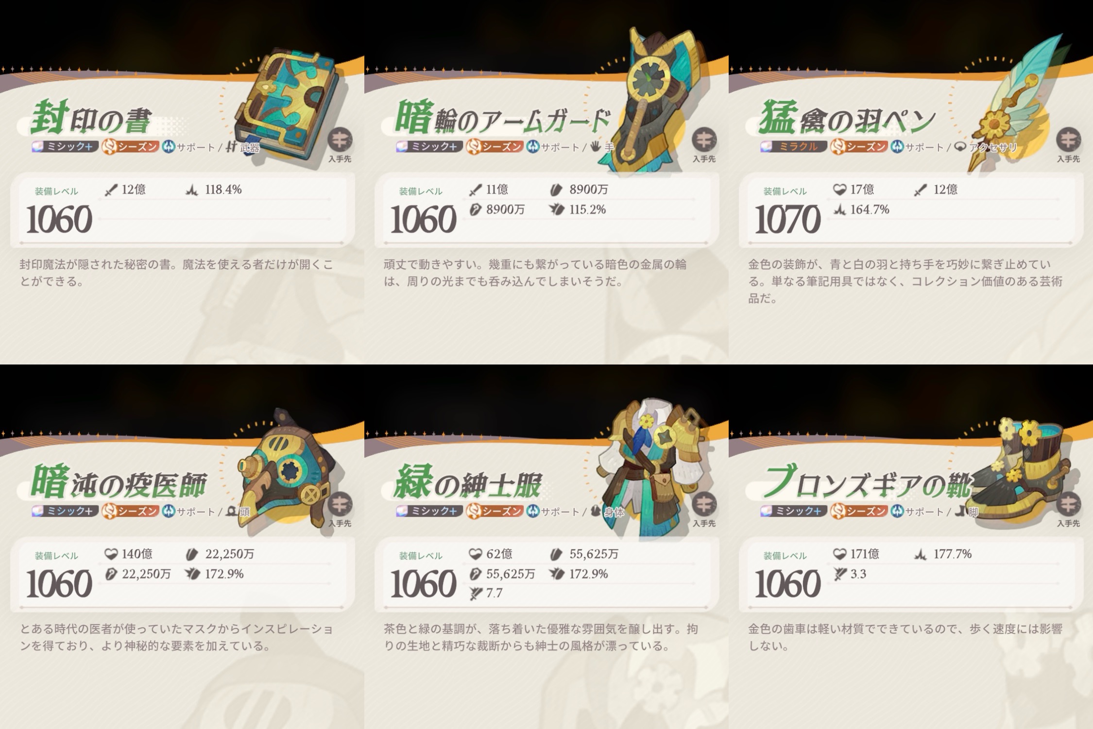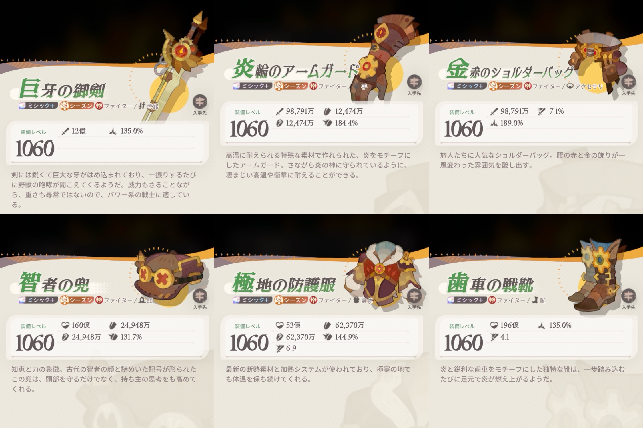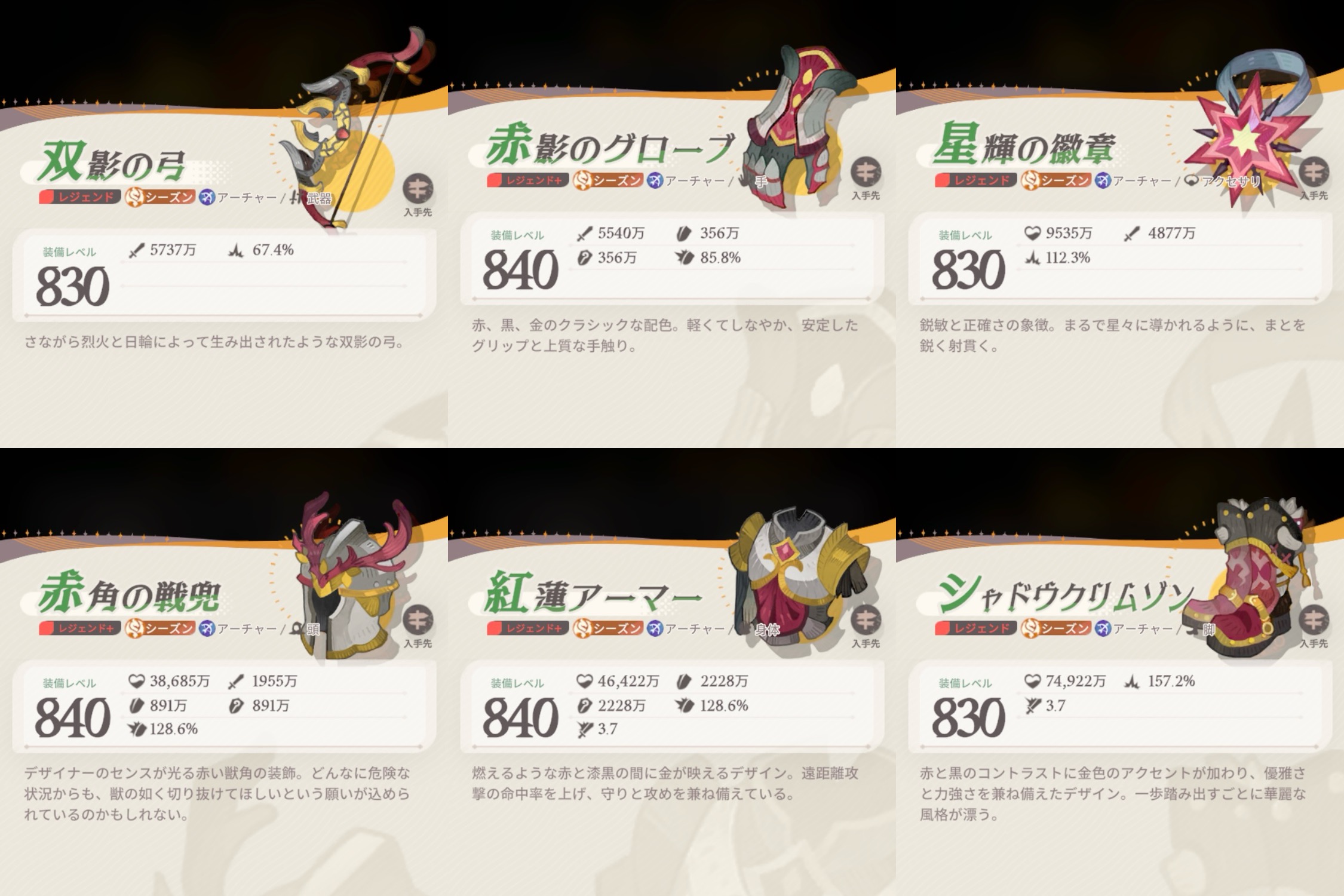 シーズン、レア度によって職業装備違うの知ってました?今回はその装備をまとめてみました。やる気がある限り随時更新。【急募】旅立ちの章の装備(レア〜レジェンド)、シーズン黄昏の戦歌/荒海に咲く...
