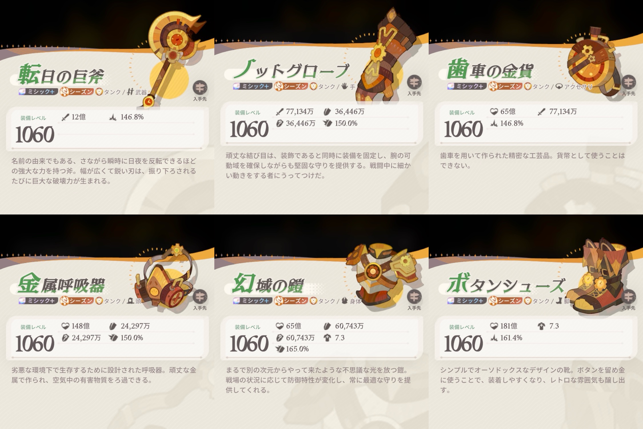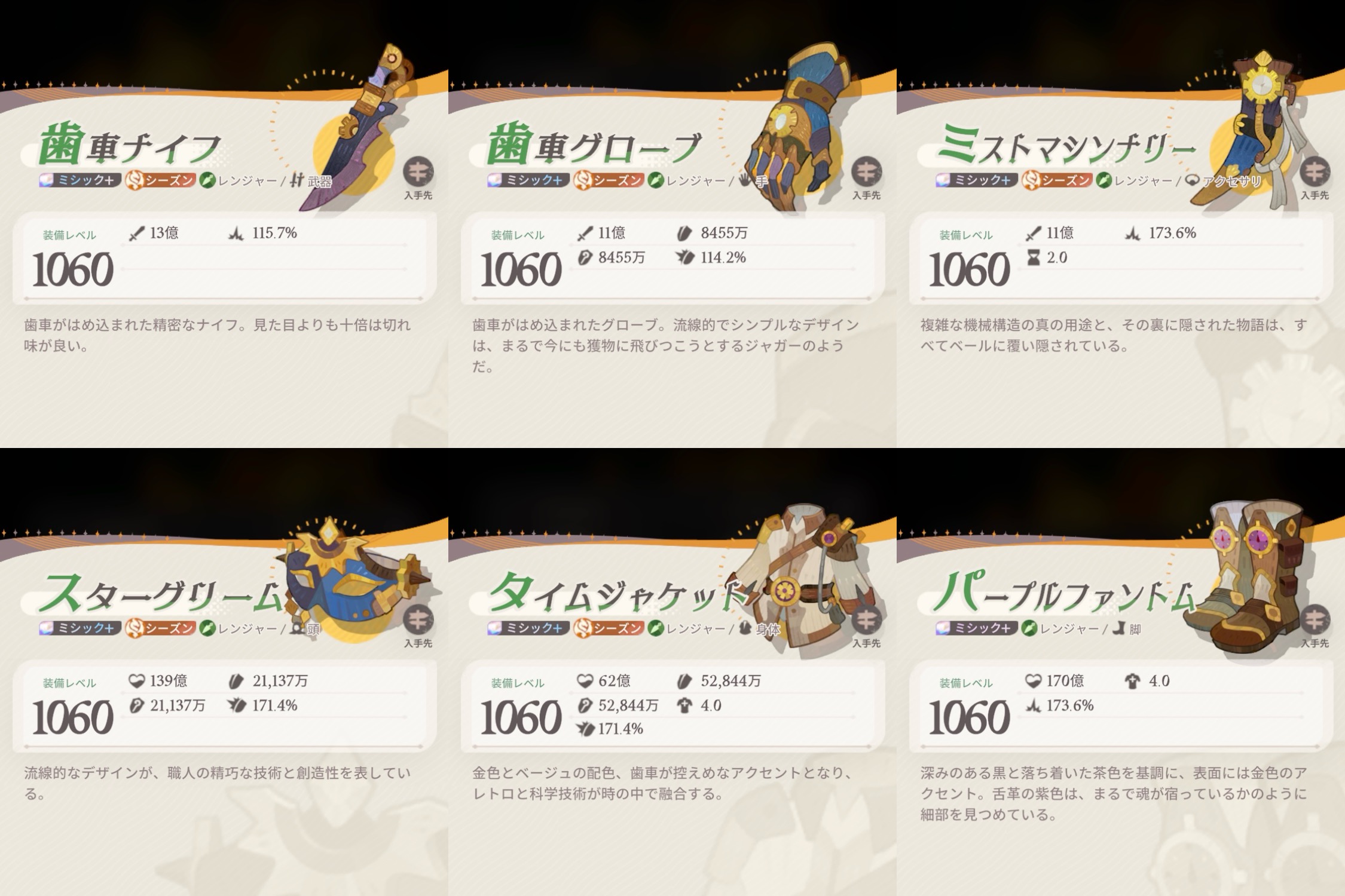 シーズン、レア度によって職業装備違うの知ってました?今回はその装備をまとめてみました。やる気がある限り随時更新。