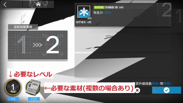 スキル育成だけページが2段階になっているので注意。(拡大画像なし)