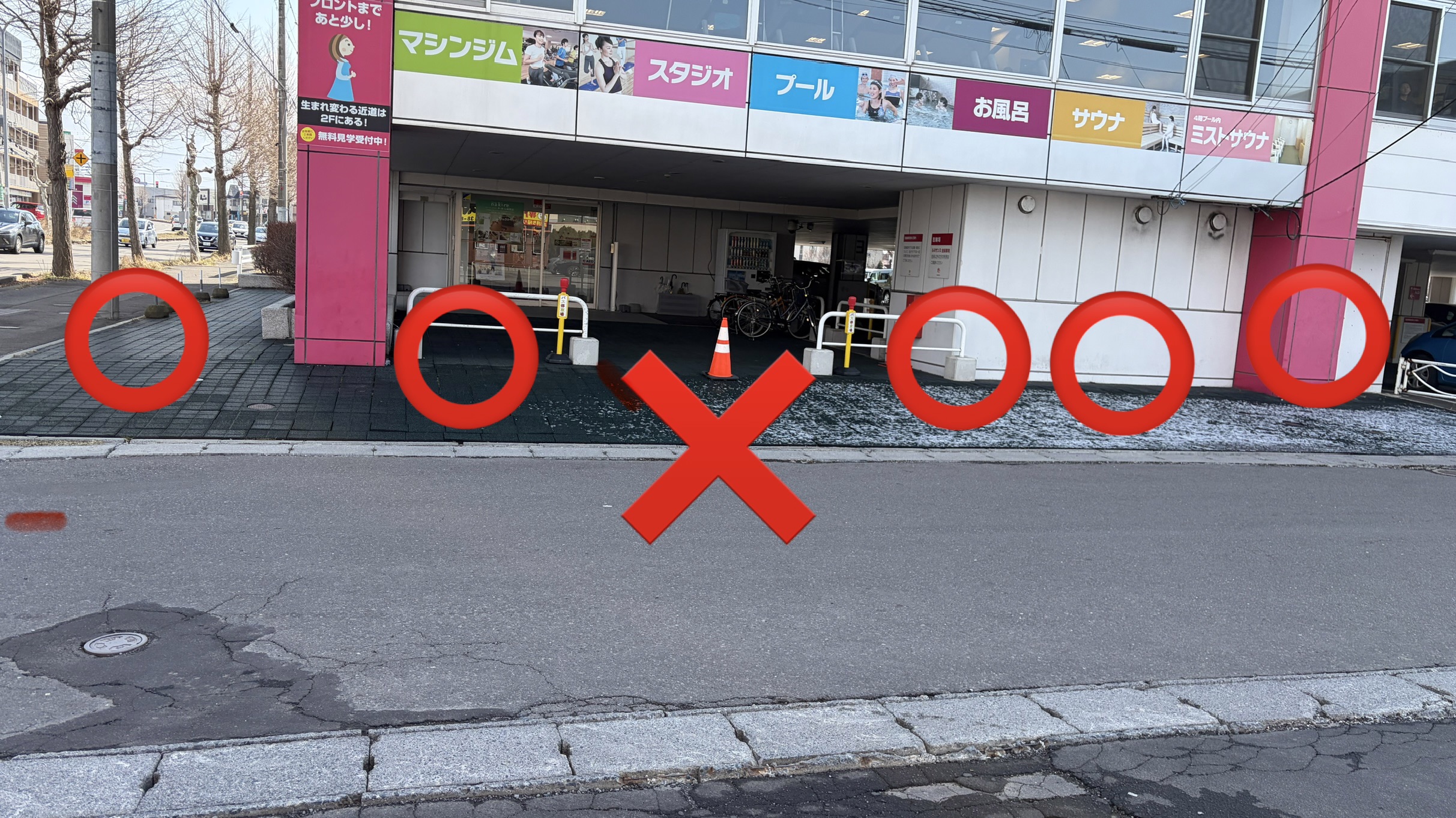 但し、正面玄関の(三角コーン)置いてるところは、駐車できません。