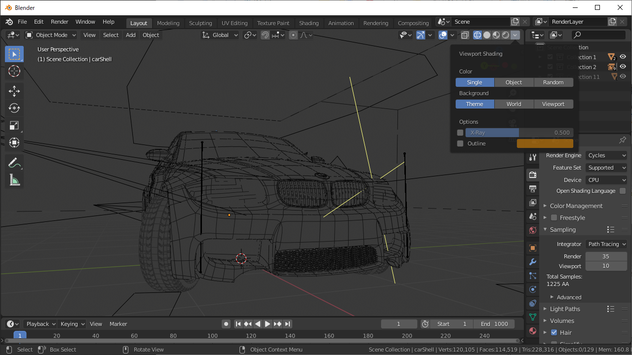 インタラクティブなレンダリングのために、シーンレンダリングエンジンを使用して3Dビューポートをレンダリングします。デフォルトでは、シーンライトがライティングに使用されます。マテリアル プレビュー モードと同じオプションで、HDRI 環境も使用できます。