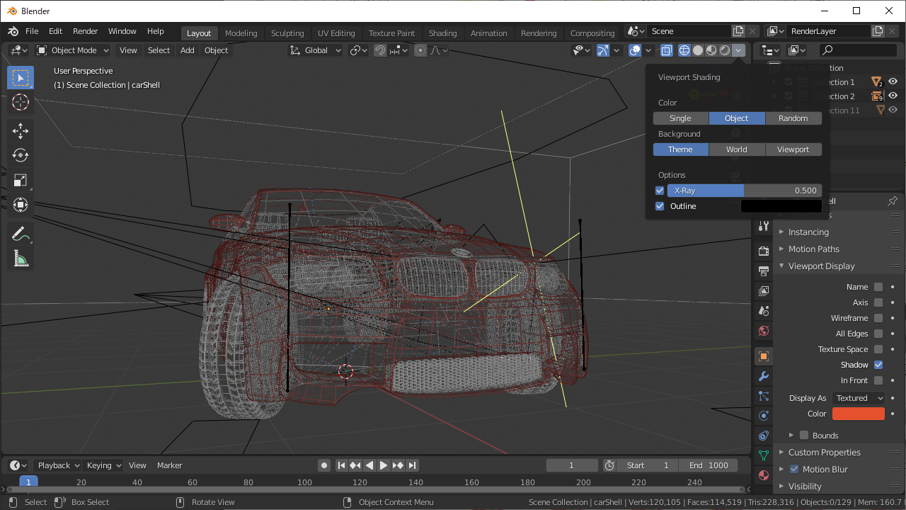 チェックボックス(Show X-Ray)で、オブジェクトの透過表示をするかしないかを設定し、スライダを使って透明度をコントロールします。Wireframe モードでは、隠線の透明度が調整されます。
