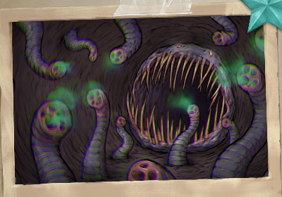 ケイブマウは触手から幻覚剤を放出し、獲物を顎へと誘い込み、罠にかける。 症状には、判断力の低下、支離滅裂な言動、痙攣、発作などがあり、重症の場合は人間性を失う。 大洞窟の壁にあばたのような穴を見つけたなら、残念ながらもう手遅れかもしれない。 |