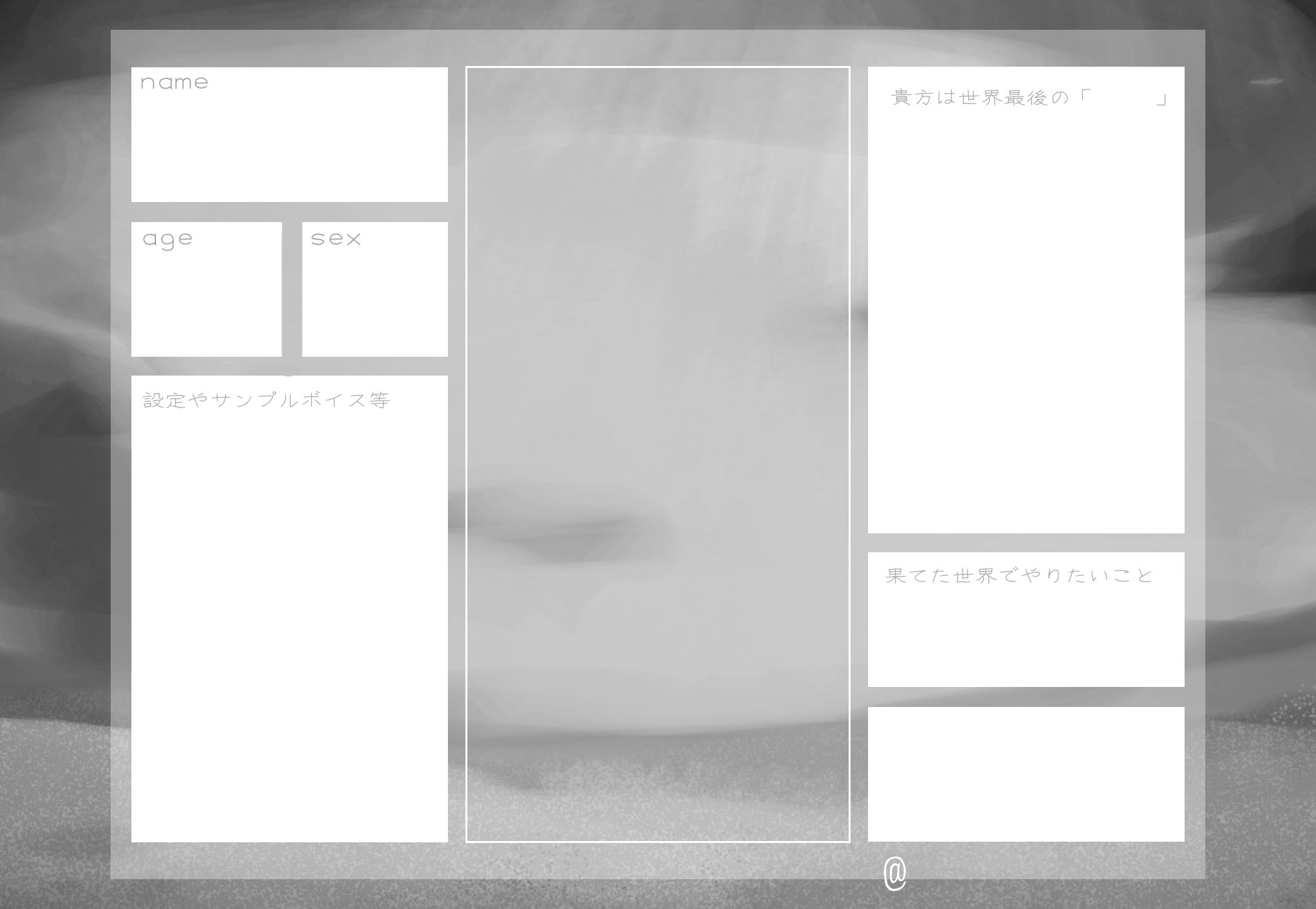 CS(キャラクターシート)にキャラの詳細を書いて、はなしふ(@end_flower_TL)twitterにDMで送ってください。