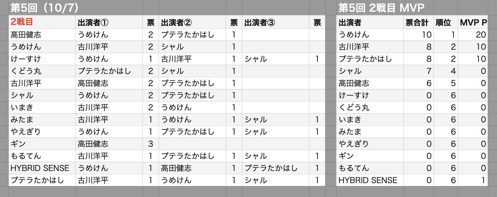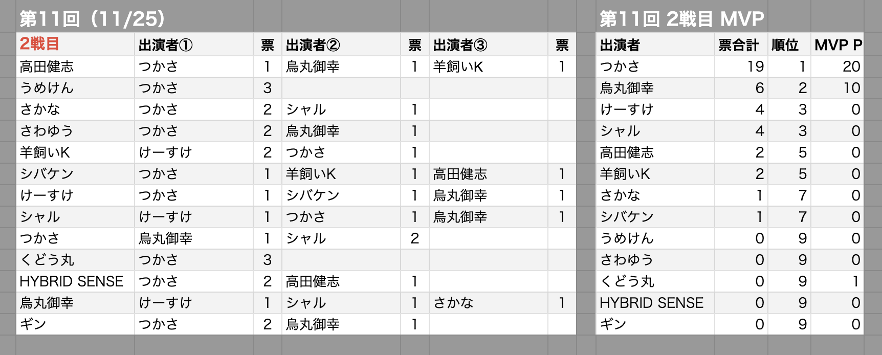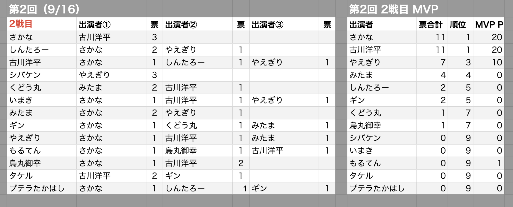 MVP村・MVPポイントの投票先一覧と最終順位2