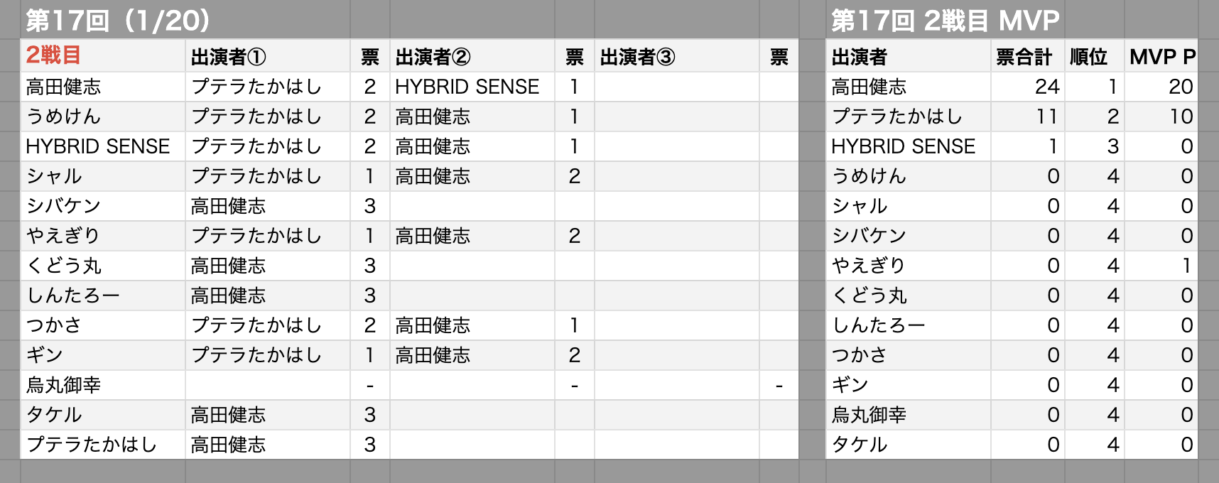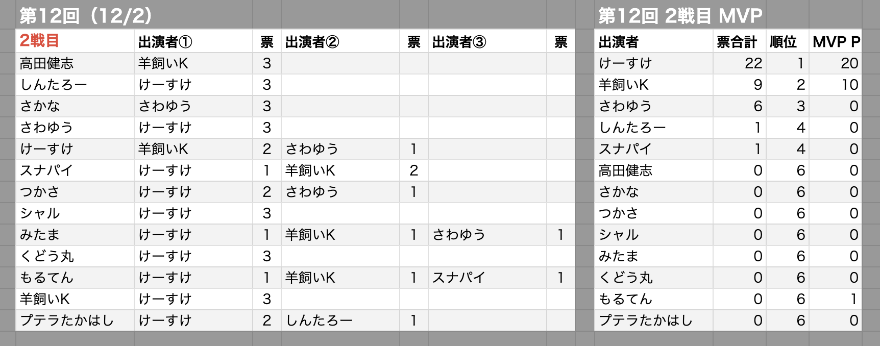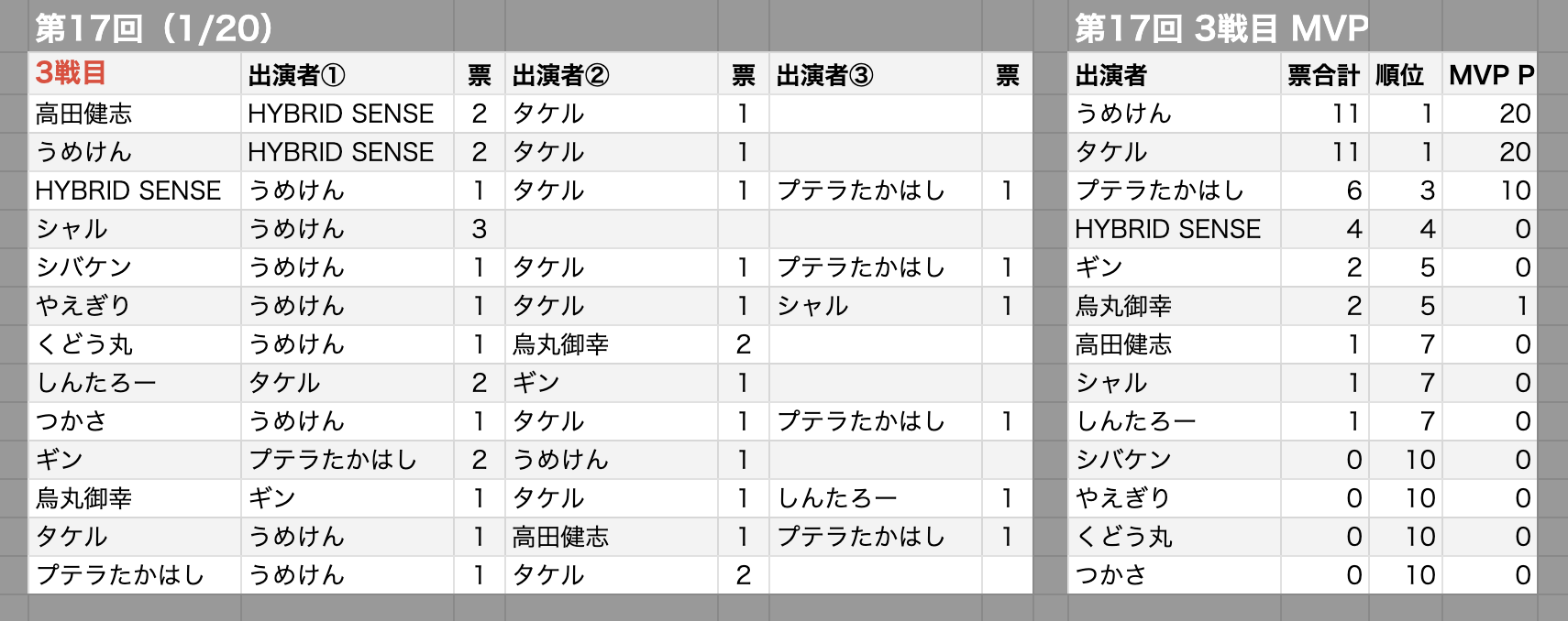 MVP村・MVPポイントの投票先一覧と最終順位3