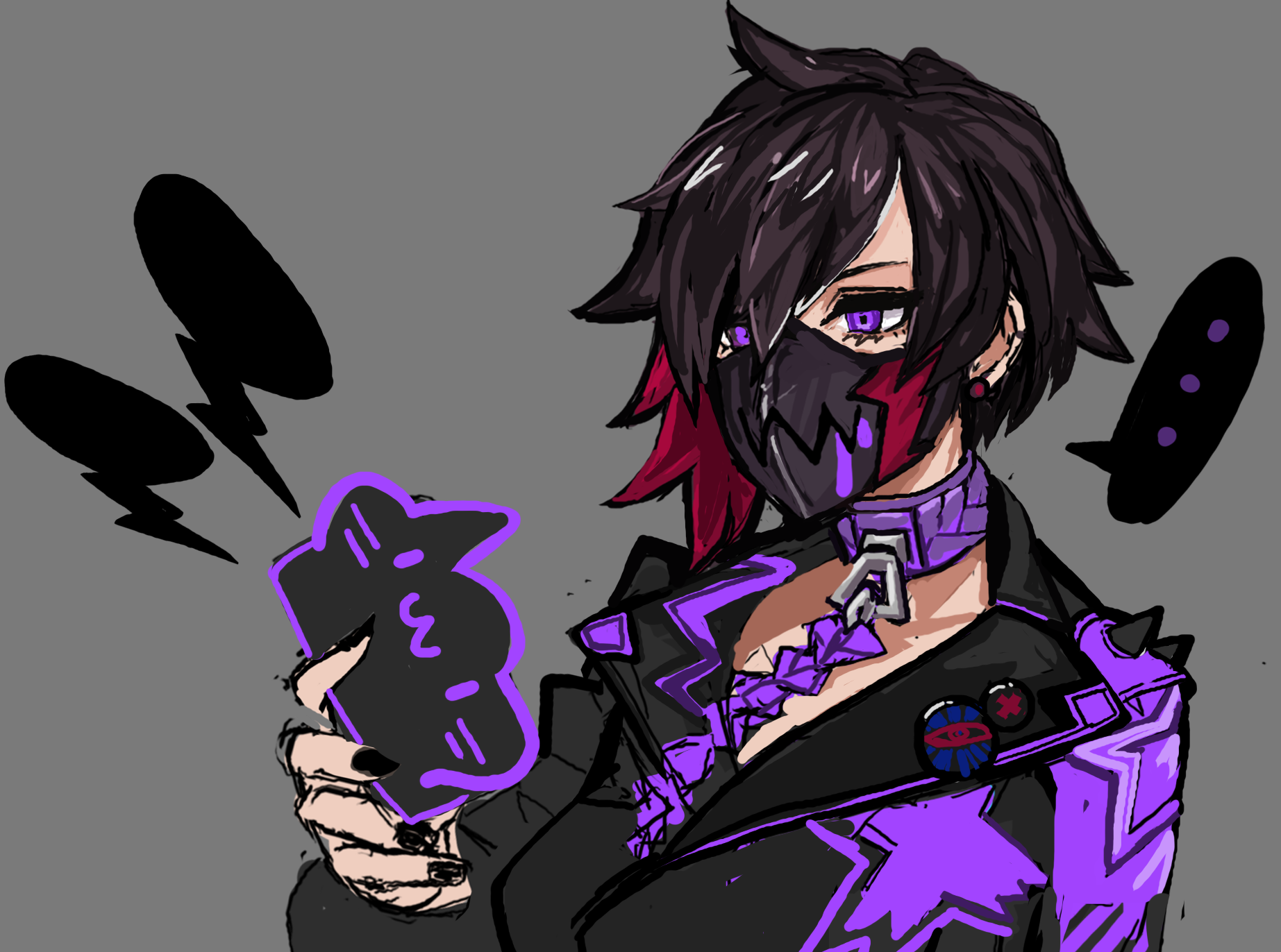 チャームポイント:マスク、個性派な衣装(手作り)、口内は紫色