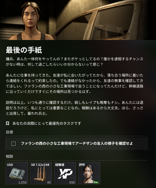 ラマン勢の場合:工事現場の中で倒れてる死体と、ナシェン農地の建物内にある手紙