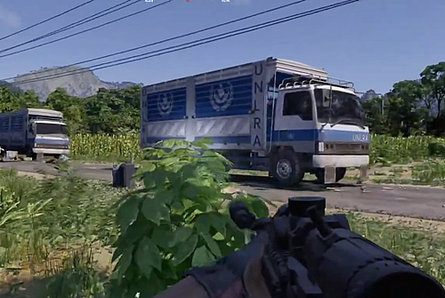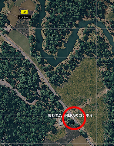 バンパの北西、道路上に襲われたUNLRAのコンボイ(198 147)があり、その先頭車両の運転手の死体を調査して報告する。