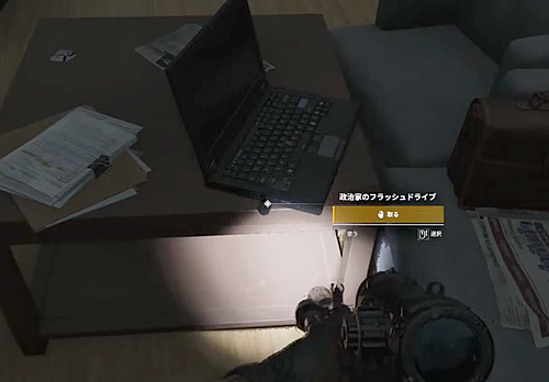 1.邸宅が何軒か並ぶ中で一番北側の邸宅(174 167)に入り、テーブルの上のノートPCに差してある「政治家のフラッシュドライブ」を取る。扉に鍵は掛かっていない。
