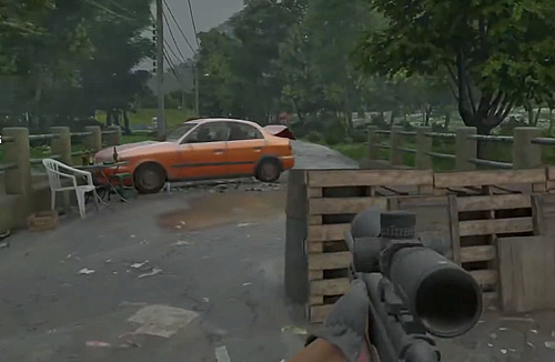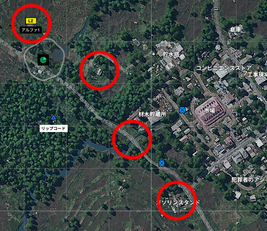 唯一解放されているLZ付近に近づく。あとはガイドの通り、小屋→バリケード→ガソリンスタンド、の順番でその付近に近づく