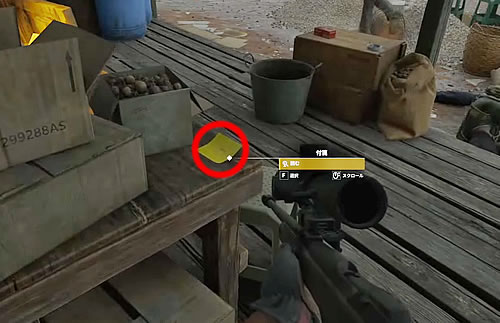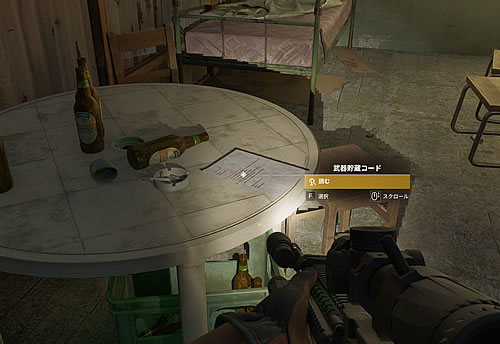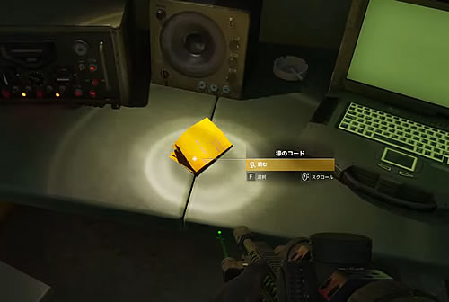入手場所:飛行場周辺にある二つの「隠されたケシ畑」の納屋のテーブル上に付箋があり、二つの付箋の暗号を掛け合わせると一つの入力コードとなる