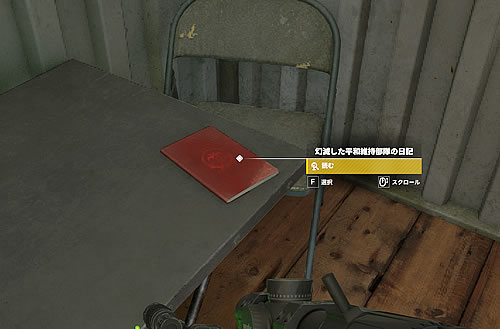 入手場所:「UNLRAコンテナ居住区」の奥、パイプ椅子が2つ置いてあるコンテナの中の机上にある赤いノート